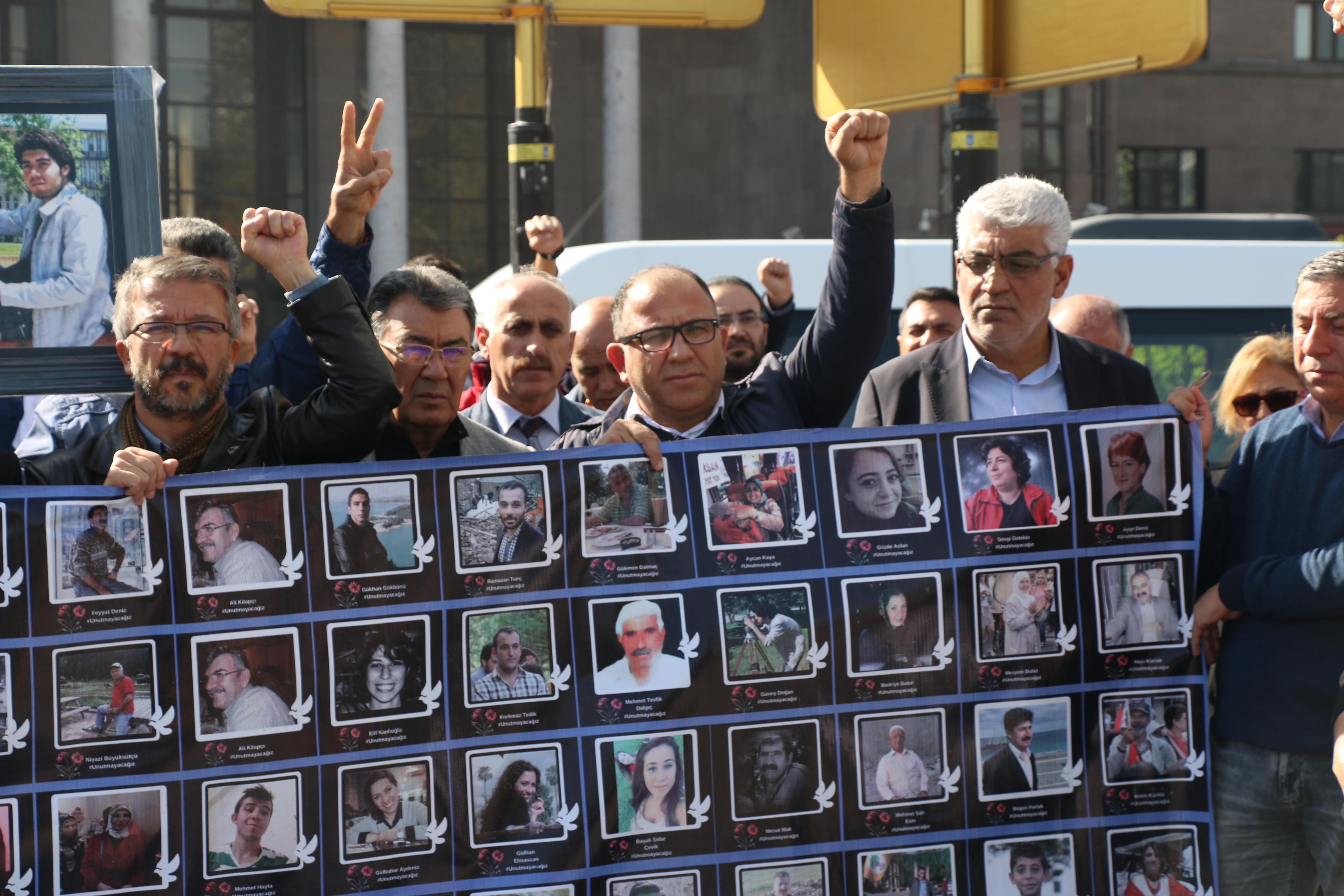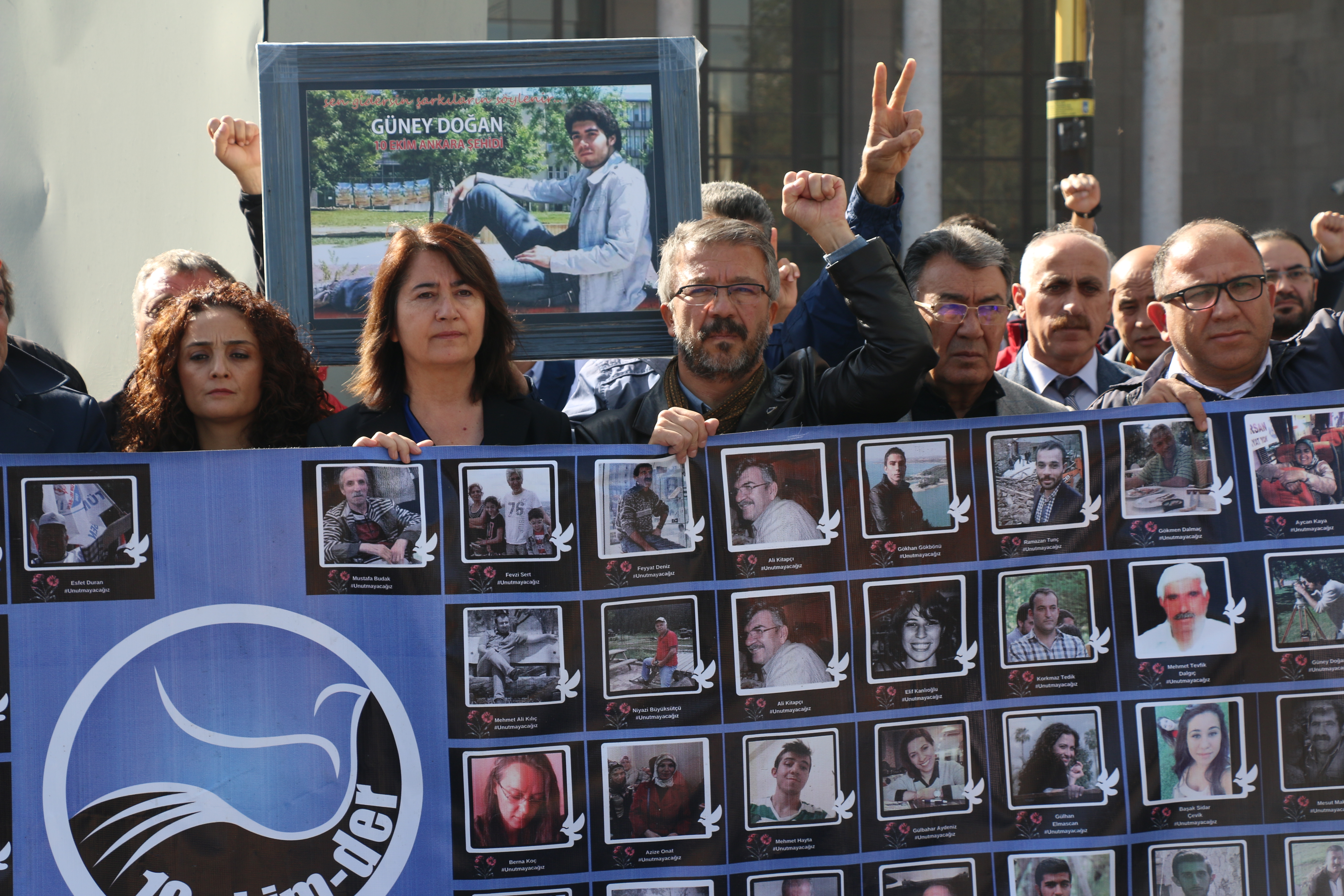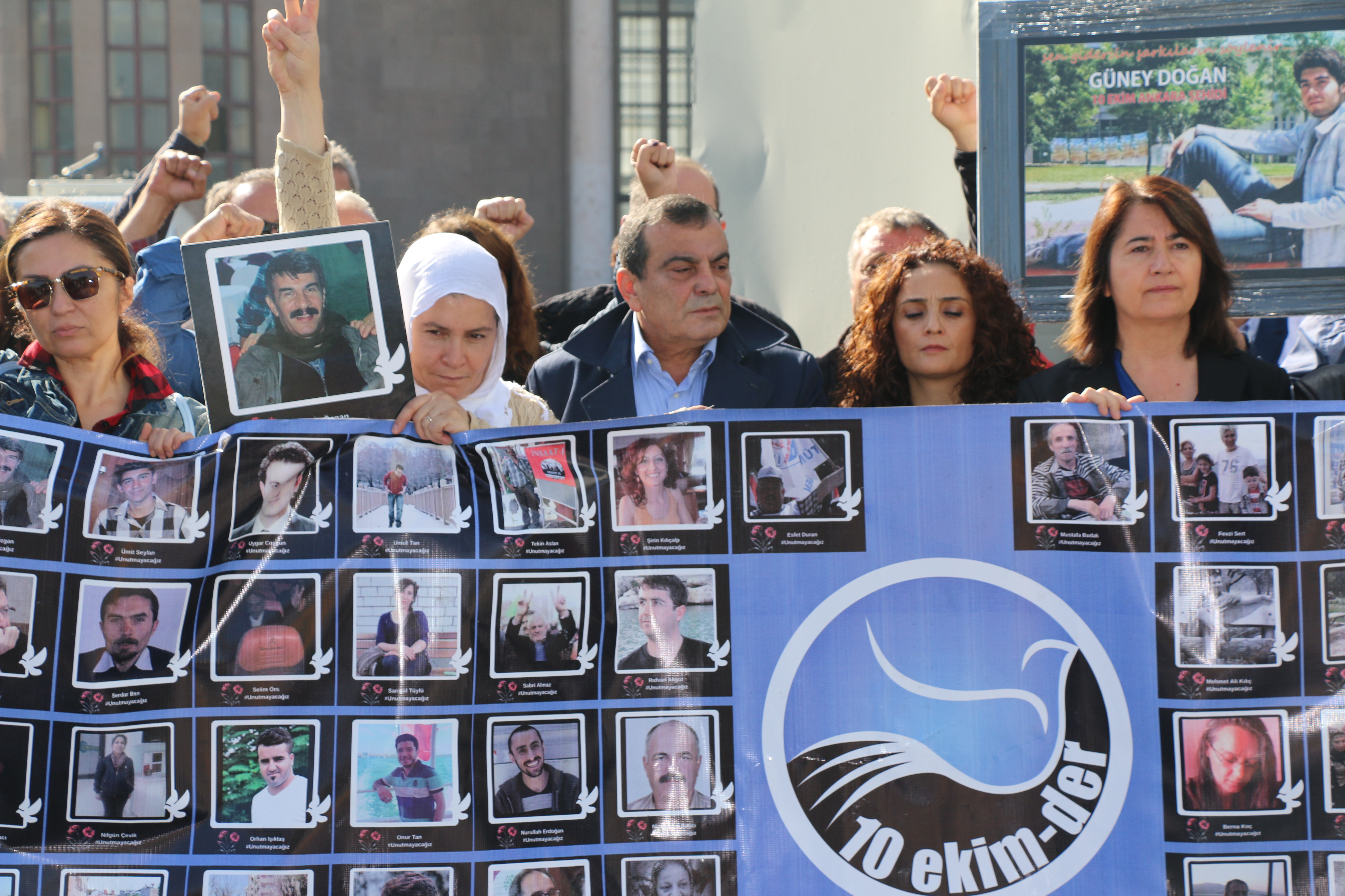 “Bugün 10 Ekim’de bundan 3 sene evvel buraya gelip barış güvercinlerini bir daha anmak için toplandık. Onlara bir sözümüz olmalı. Onlar eşit, özgür, demokratik bir Türkiye istiyorlardı. Onlar gericiliğin değil, insanca yaşanacak bir düşüncenin hâkim olduğu bir Türkiye istiyorlardı. Gericilere faşizme, emperyalizme, inat biz onların bize açtığı yolda eşit, özgür, barış içerisinde yaşayan demokratik bir Türkiye’yi mutlaka kuracağız. Bu 4 örgütün gönlü insanlıktan yana atan herkesin onlara sözüdür. Kahrolsun faşizm, kahrolsun gericilik, kahrolsun emperyalizm. Yaşasın hakların kardeşliği, yaşasın barış, yaşasın demokrasi.”