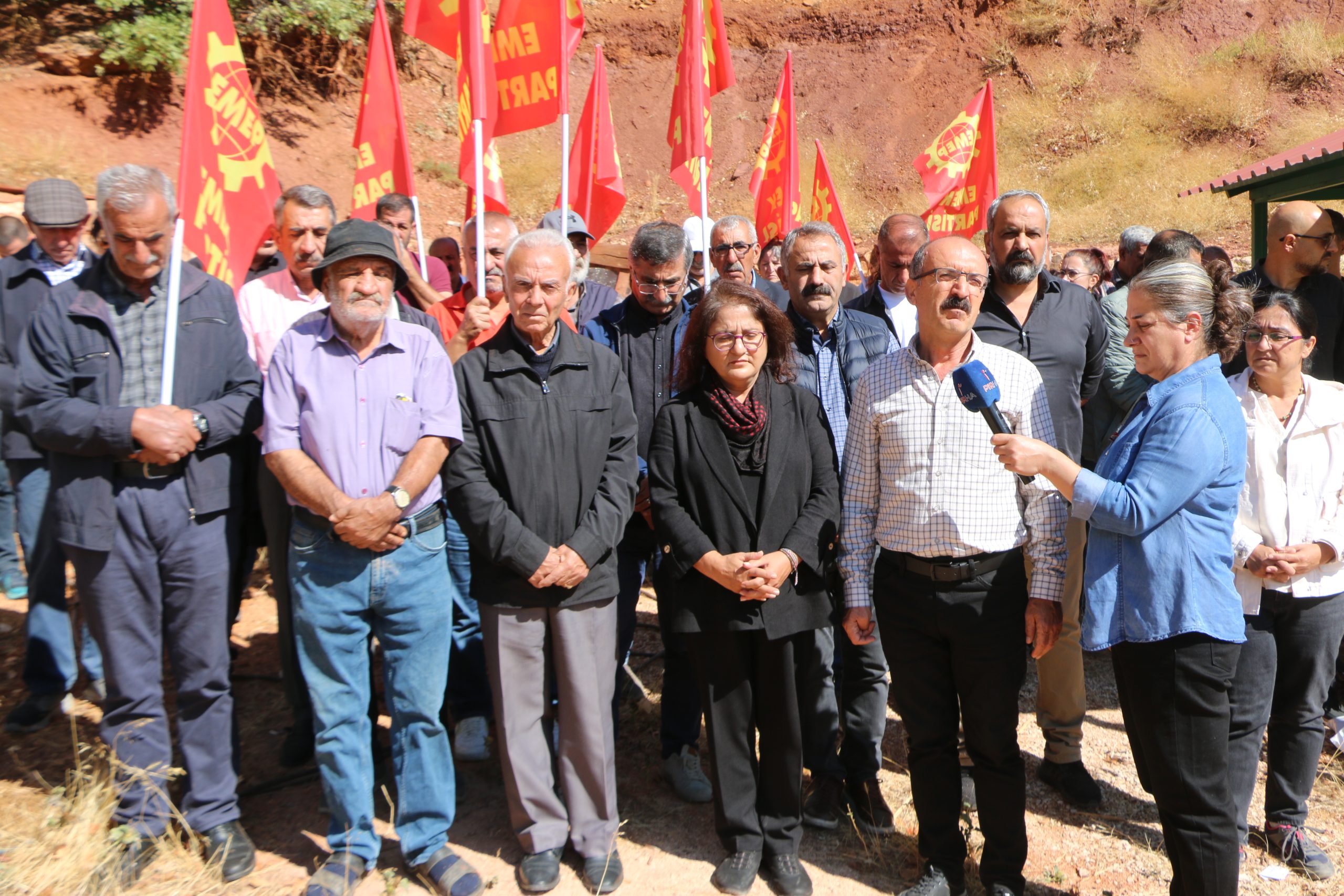 PİRHA-10 Ekim Ankara Gar Katliamı’nda yaşamını yitiren Mesut Mak ve Adil Gür Dersim’de mezarları başında anıldı. Katliamın arkasındaki güçleri ortaya çıkarana kadar mücadele edeceklerini ifade eden Emek Partisi Merkez Disiplin ve Denetleme Kurulu üyesi Mustafa Taşkale, “10 yıl önce katledilen canlarımız barışın hayata geçmesi için o gün oradaydılar. Bizler barış mücadelesini taçlandırıcağımıza dair Mesut ve Adil’e söz veriyoruz” dedi.