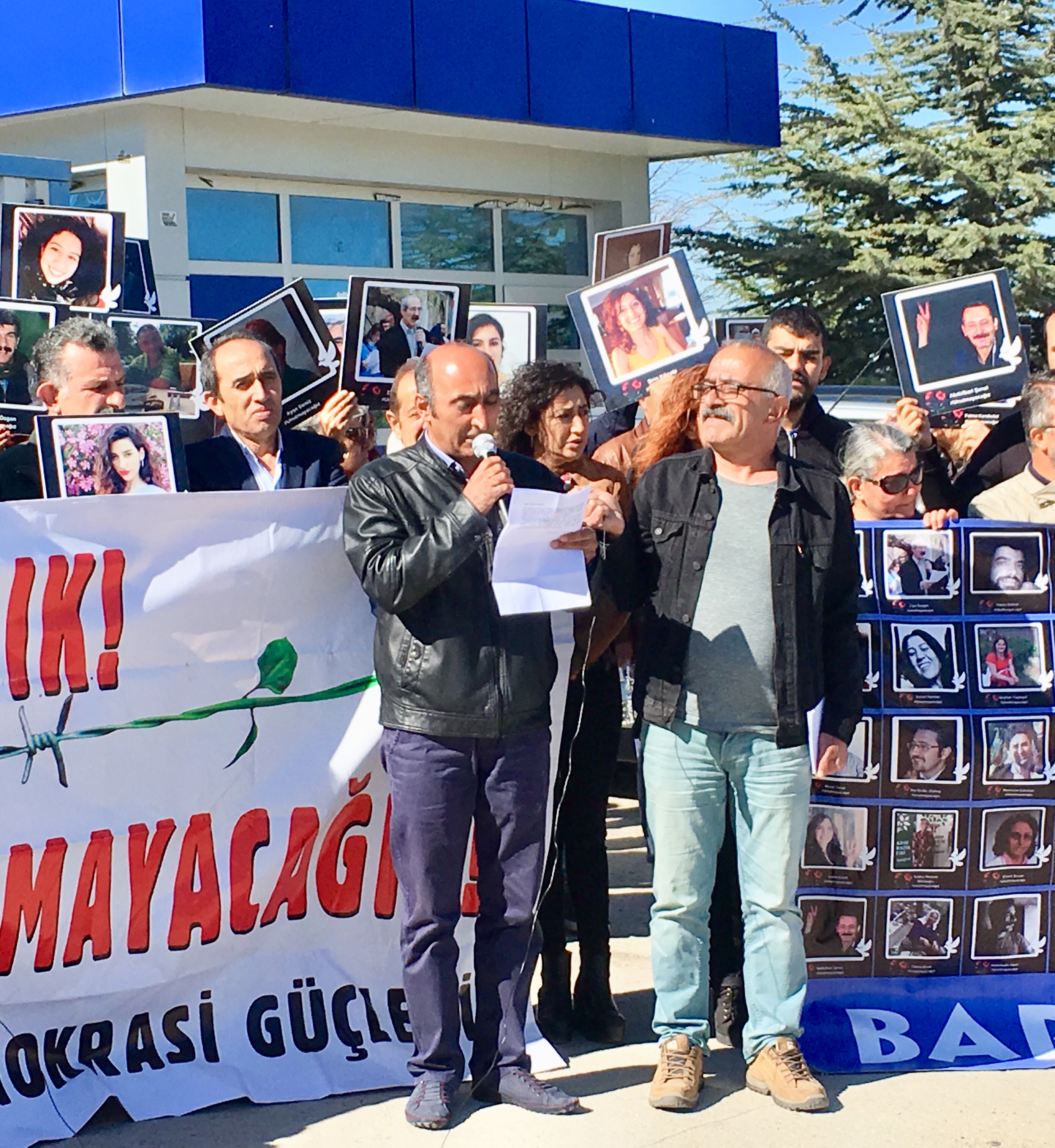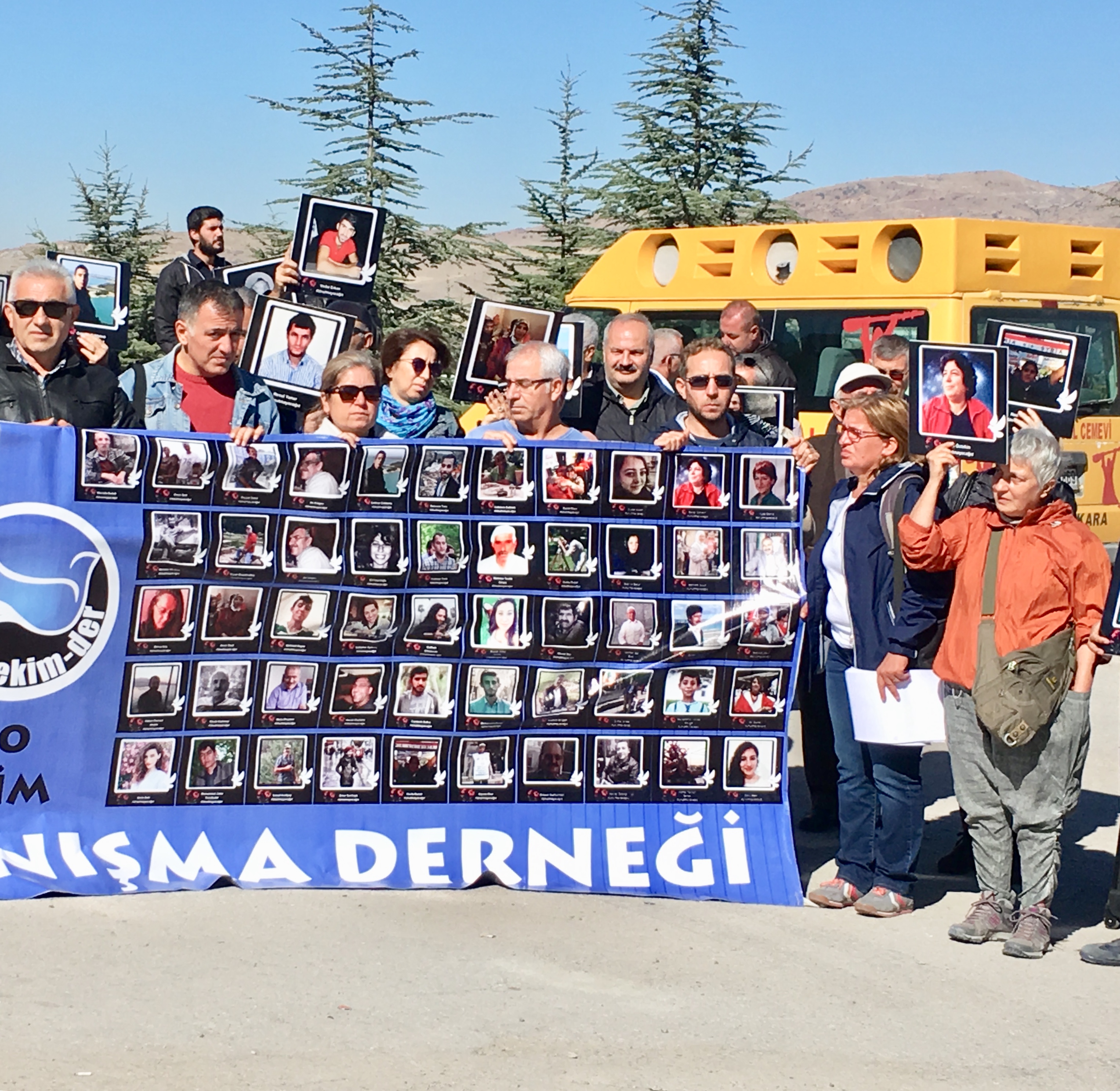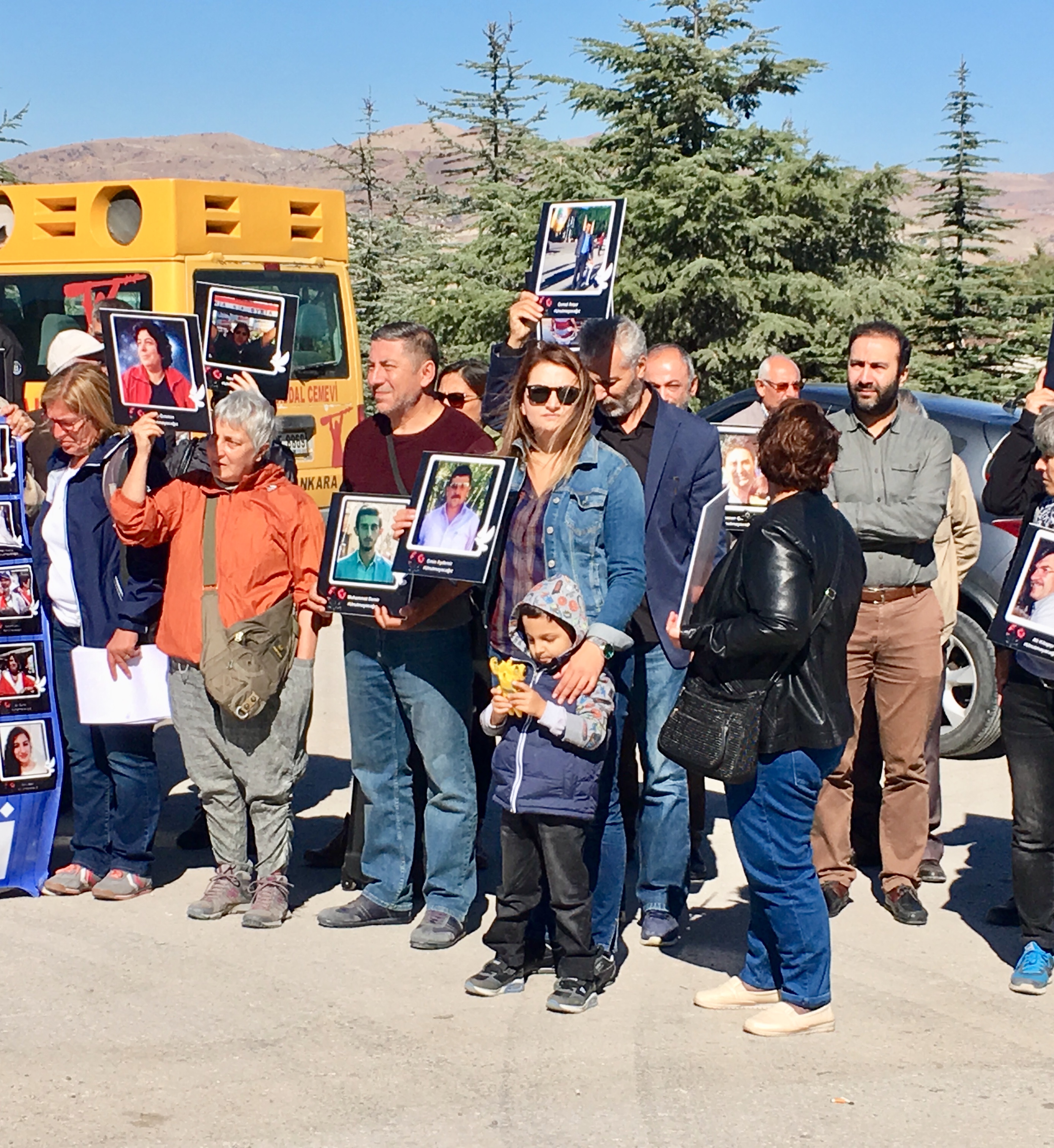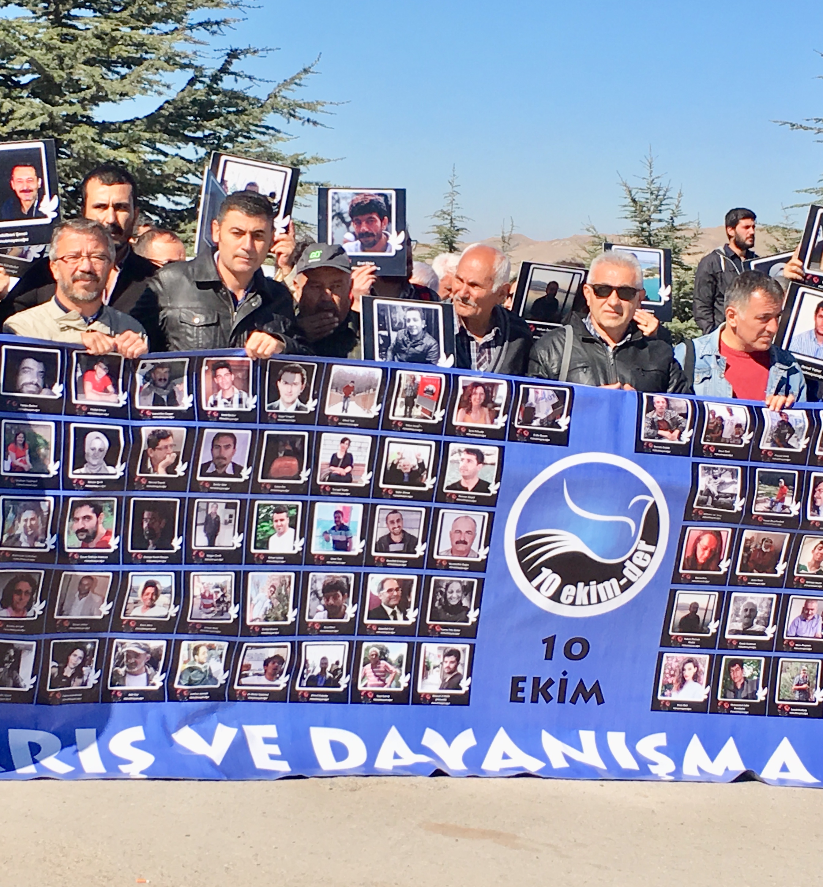 Ankara’da Karşıyaka mezarlığında 5 No’u kapıda bir araya gelen KESK, TMMOM, DİSK VE TTB ve 10 Ekim Derneği üyesi ile siyasi partiler temsilcisinin katılım gösterdiği anmada mezarlık ziyaretlerinden önce bir basın açıklaması gerçekleştirildi.