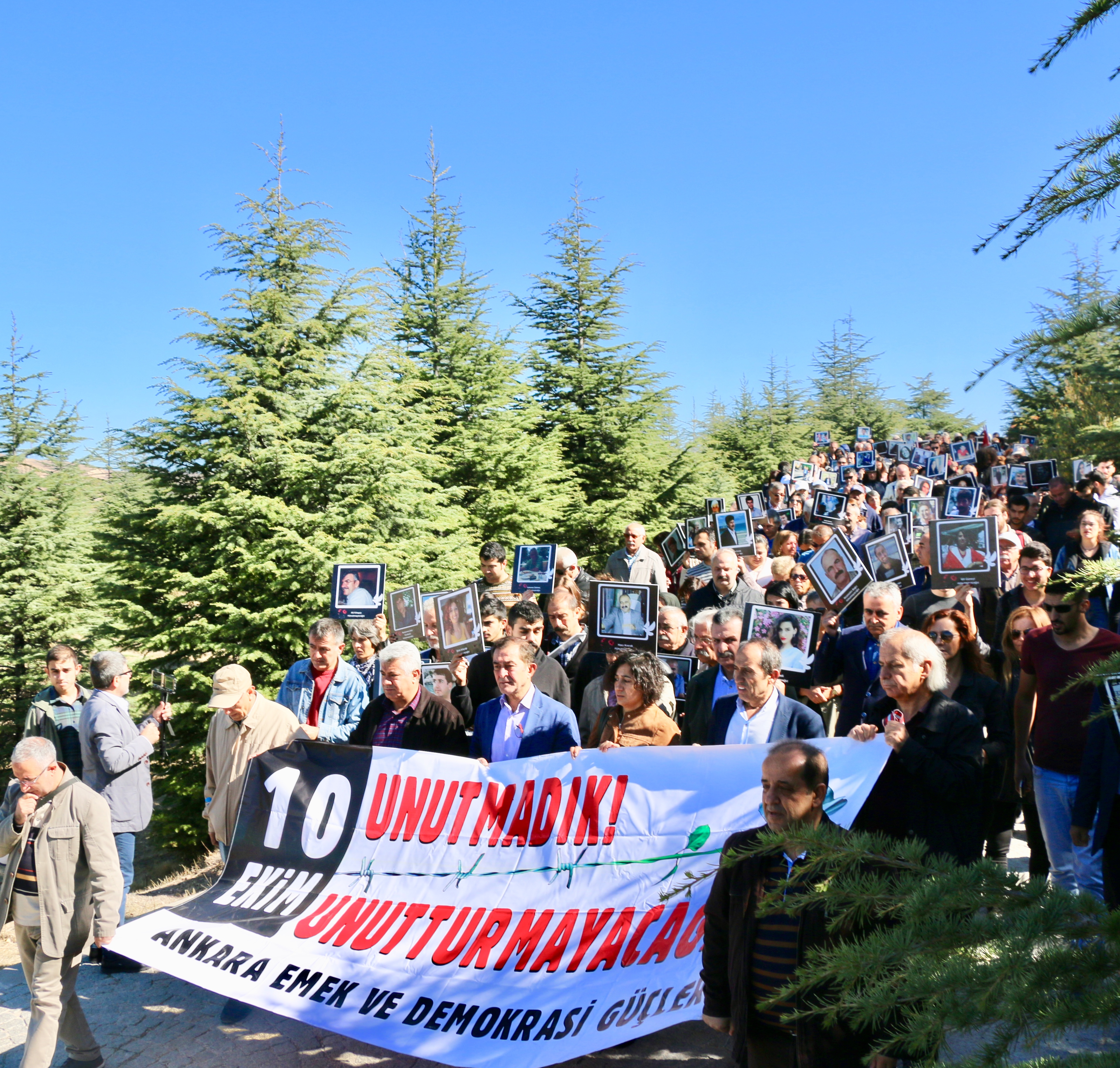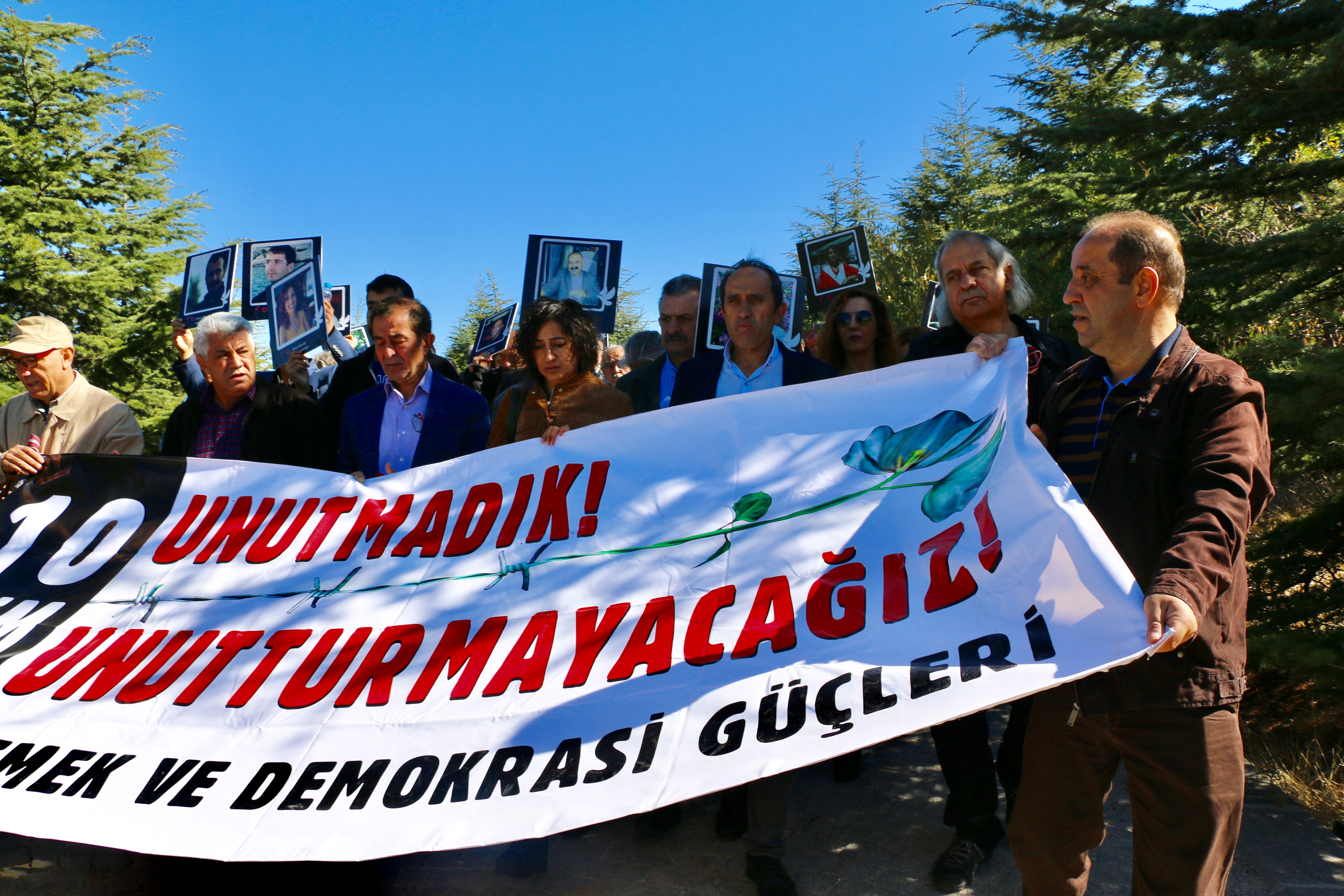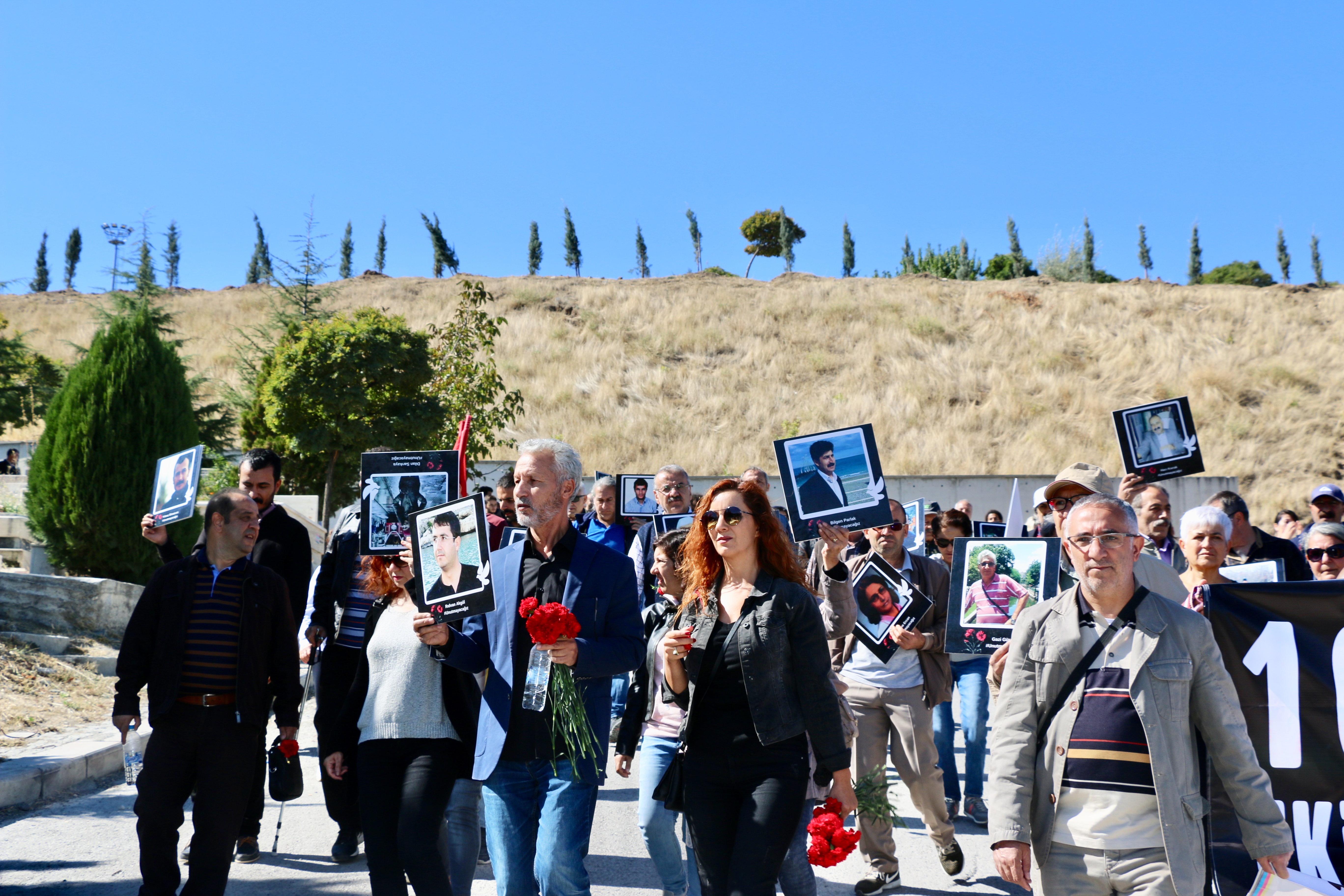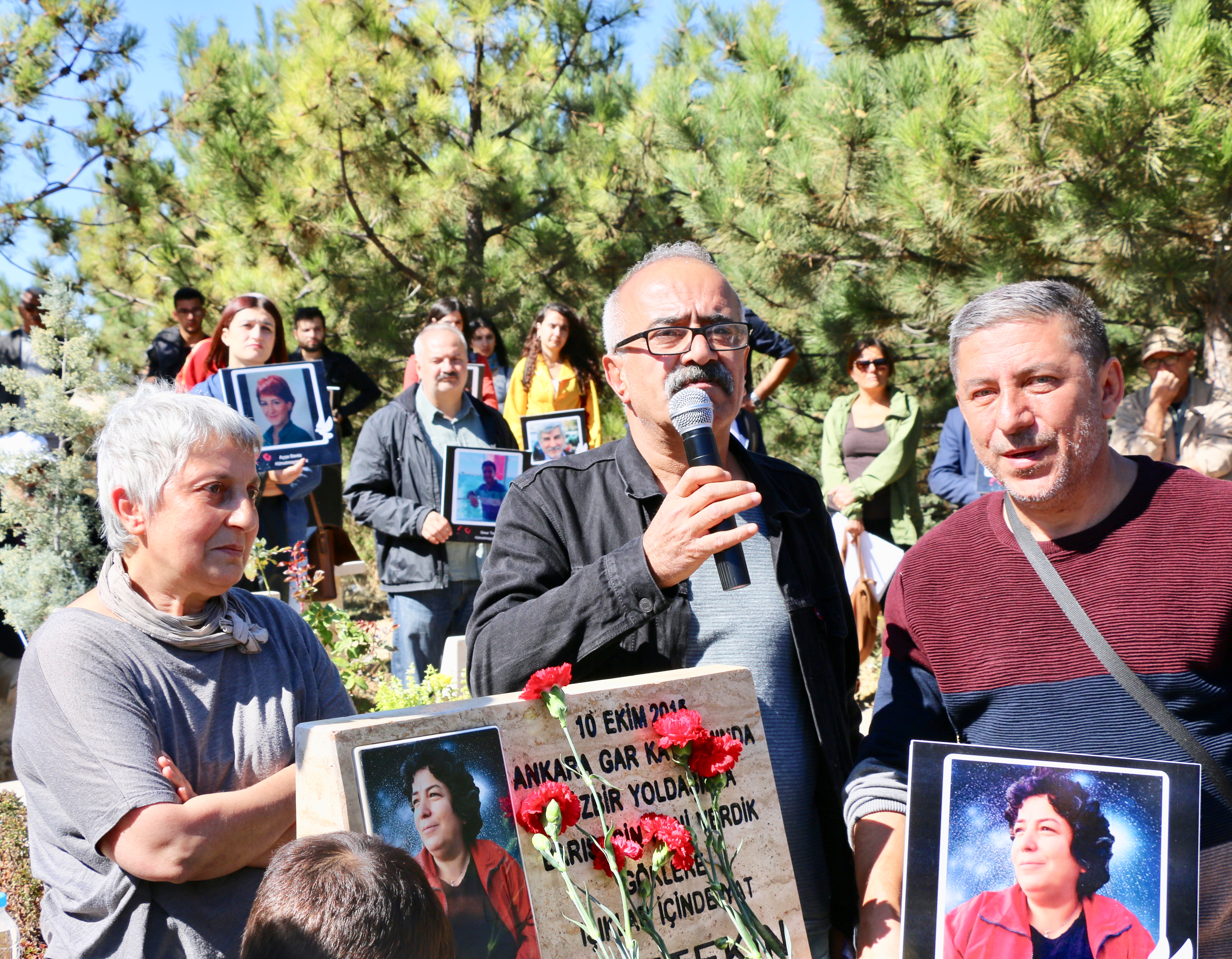 10 Ekim Ankara Katliamı mağdurlarından Yavuz Demirkol ise “Bizler bu katliamları hiçbir zaman unutmayacağız. Arkadaşlarımızın katilleri yargılanana kadar mücadelemizi devam ettireceğiz” ifadelerin kullandı. Daha sonra katliamda yaşamını yitiren Sevgi Öztekin’in mezarı ziyaret edildi.