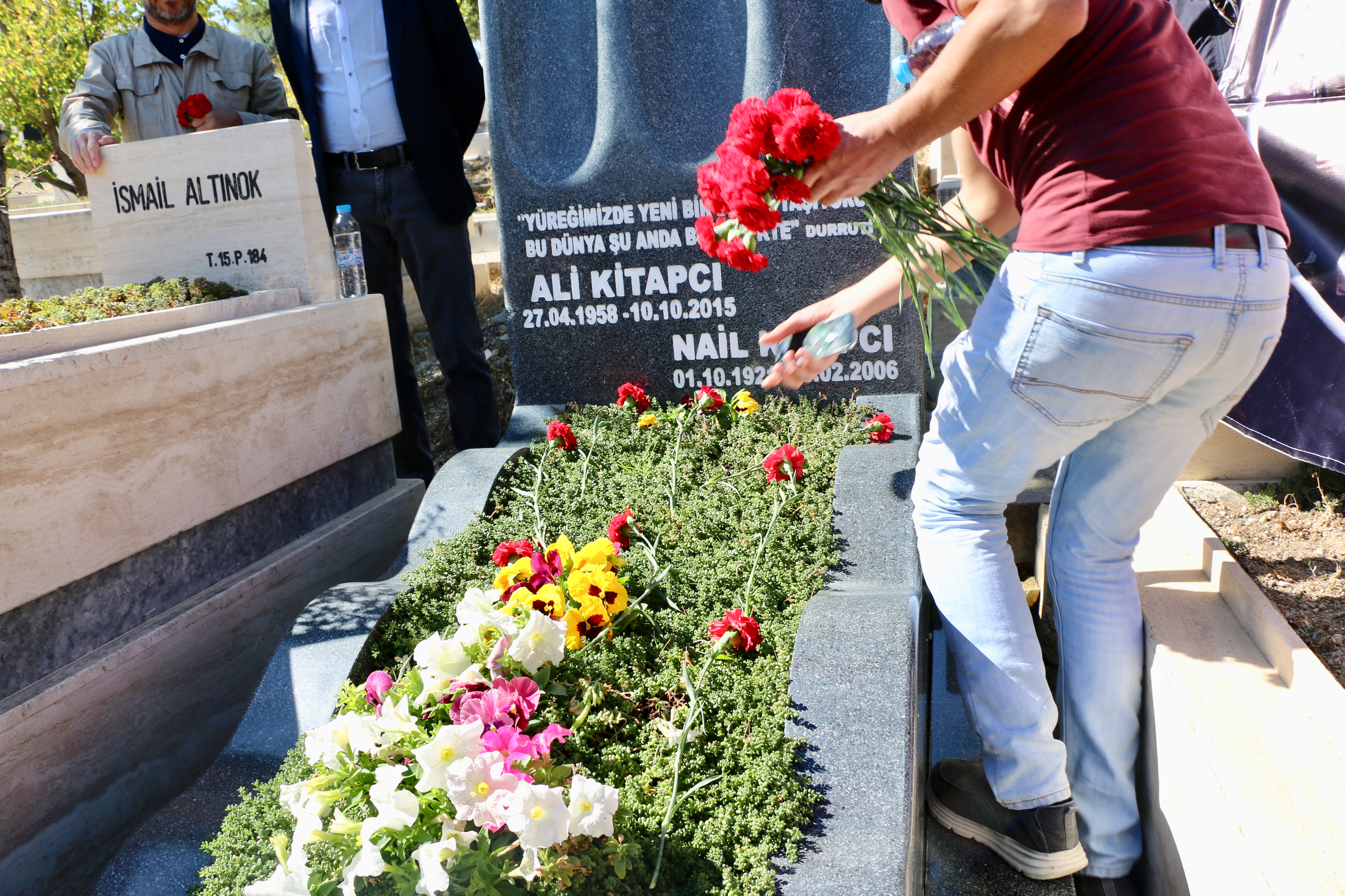 Ardından BTS Eski MYK üyesi Ali Kitapçı’nın mezarı başına gidildi. burada eşi Emel Kitapçı ise 10 Ekim’in ardından da devletin zulmünün büyüdüğünü, katliamlar ve saldırılar yaşandığını söyledi. Gar önlerinde, mahkeme salonlarında varolmaya devam edeceklerini söyleyen Emel Kitapçı, “Ben Ali Kitapçı’yı hâlâ defnedemedim. Ali Kitapçı’nın kanı, bedeni, Gar Meydanı’nda duruyor. Ne zaman bu katliama yol açanlar hesap verecek, biz yakınlarımızı o zaman defnetmiş olacağız” dedi.