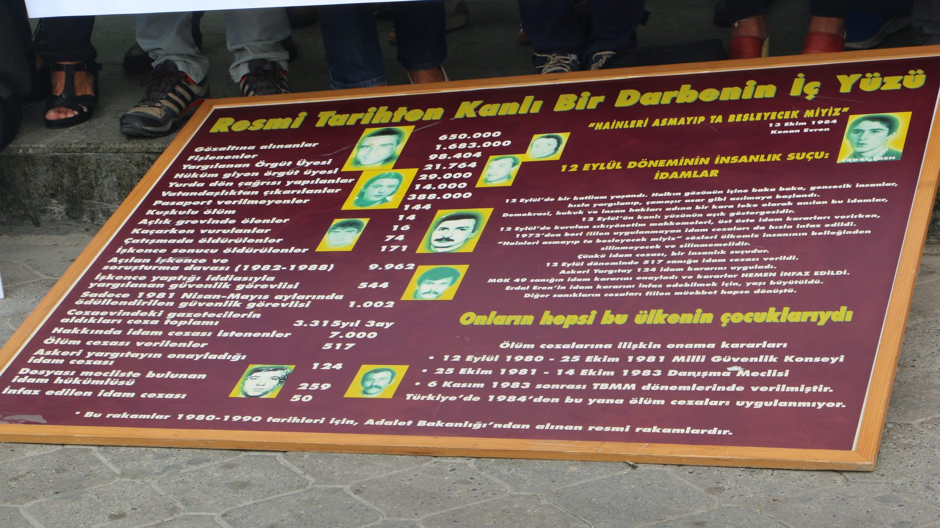 “Milyon gözaltı, sayısız işkence, işkencede ölümler, 50 idam, hâlâ bulunamayan gözaltında kayıplar. Yasaklanan ve yakılan milyonlarca kitap, dergi ve gazete, işinden, okulundan atılan on binlerce işçi, memur, öğrenci, öğretim görevlisi, pasaport verilmeyen, vatandaşlıktan çıkartılan, fişlenen ve yaşamları paramparça edilen milyonlarca insanımız ve cezaevlerindeki katliamlar…1970’li yılların özgürlükçü, eşitlikçi, hakkını ve hukukunu arayan toplumsal özgürlük ruhunu tasfiye etmeye yönelik ağır insan hakları ihlallerinin mimarı olan 12 Eylülcüler, yaşadığımız coğrafyanın vicdanı olan solu ve özgürlükçü düşünceyi ülkenin gündeminden silmeye çalıştılar” şeklinde konuştu.