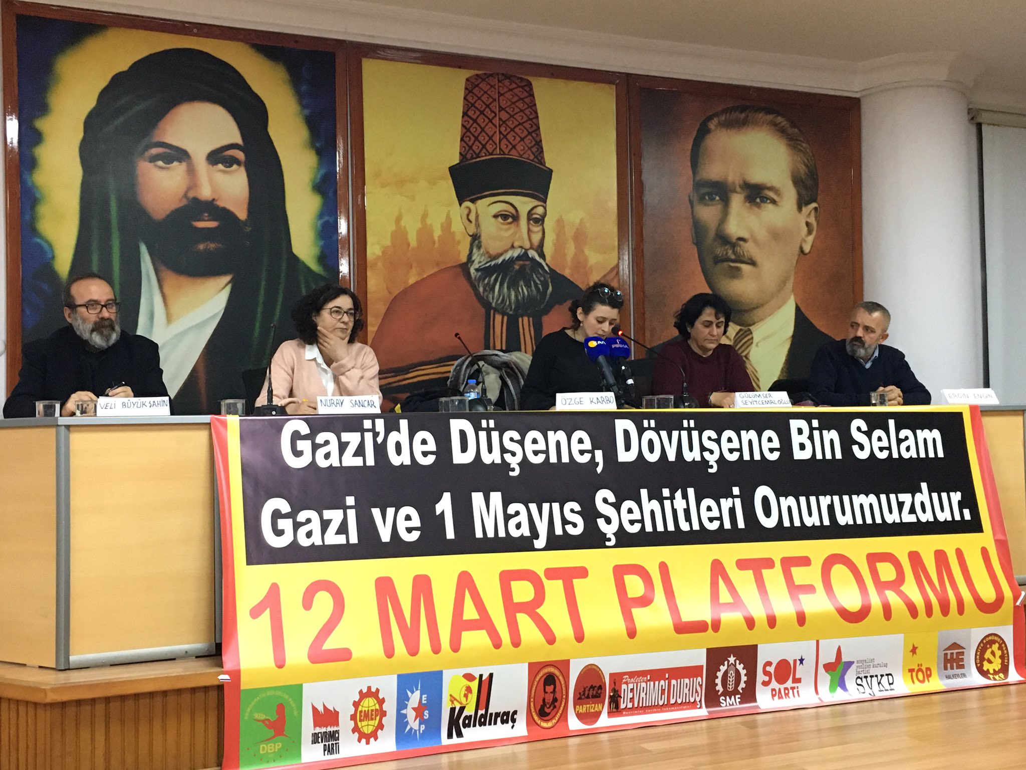 12 Mart Platformu Gazi katliamının 28. yıl dönümü dolayısıyla Gazi Cemevi’nde panel düzenledi. “Gazi’de düşene, dövüşene bin selam. Gazi ve 1 Mayıs Şehitleri onurumuzdur” pankartının da açıldığı panele Veli Büyükşahin, Nuray Sancar, Özge Karbo, Gülümser Seyitcemaloğlu ile Ergin Engin konuşmacı olarak katıldı.