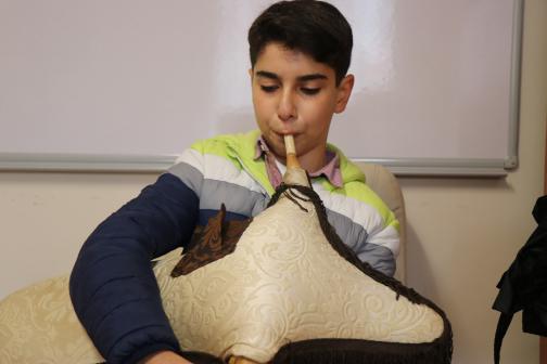 “2 seneden beri tulum çalıyorum. Babamın bir yeğeni çalıyordu, ona heves ettim. Daha sonra beni kursa yönlendirdi. Onun aracılığıyla kendimi geliştirdim. Seyircinin olduğu ortama çıkmak zor oluyor, onların önünde çalmak heyecanlandırıyor. Çalınca rahatlıyorum. Derdimi, tasamı onun içine üflüyorum. İnsanlar yeni bir şey gördüğü için merak ediyor. İlk balon üflemeyle başladım bu işe. Balonu 10 saniyede tamamen şişirmem ve patlatmam gerekiyordu. Bu şekilde akciğerlerim gelişti ve çalmaya alıştım” diye belirtti.