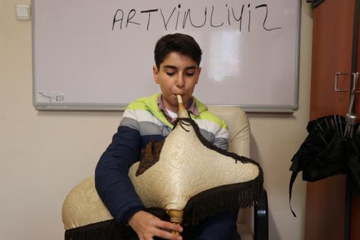 PİRHA- Alper Bayram 12 yaşında. Artvin Cerattepe’de doğa kıyımına karşı tulum çalarak tepki gösteriyor. Bayram, “Altın madeninin Artvin’e zarar vermesine tepki olarak eylemlerde çalıyorum ve umarım Artvin madenden kurtarılır” diyor.