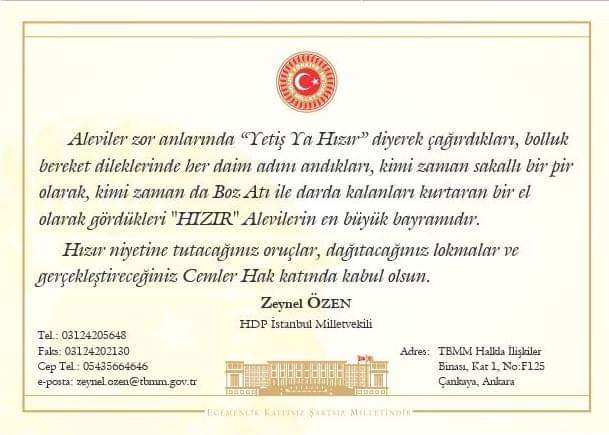 PİRHA-HDP İstanbul milletvekili Zeynel Özen TBMM’de herkese açık olarak gerçekleşecek Hızır lokması dağıtımına tüm canları davet etti.