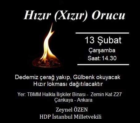 PİRHA-HDP İstanbul milletvekili Zeynel Özen TBMM’de herkese açık olarak gerçekleşecek Hızır lokması dağıtımına tüm canları davet etti.