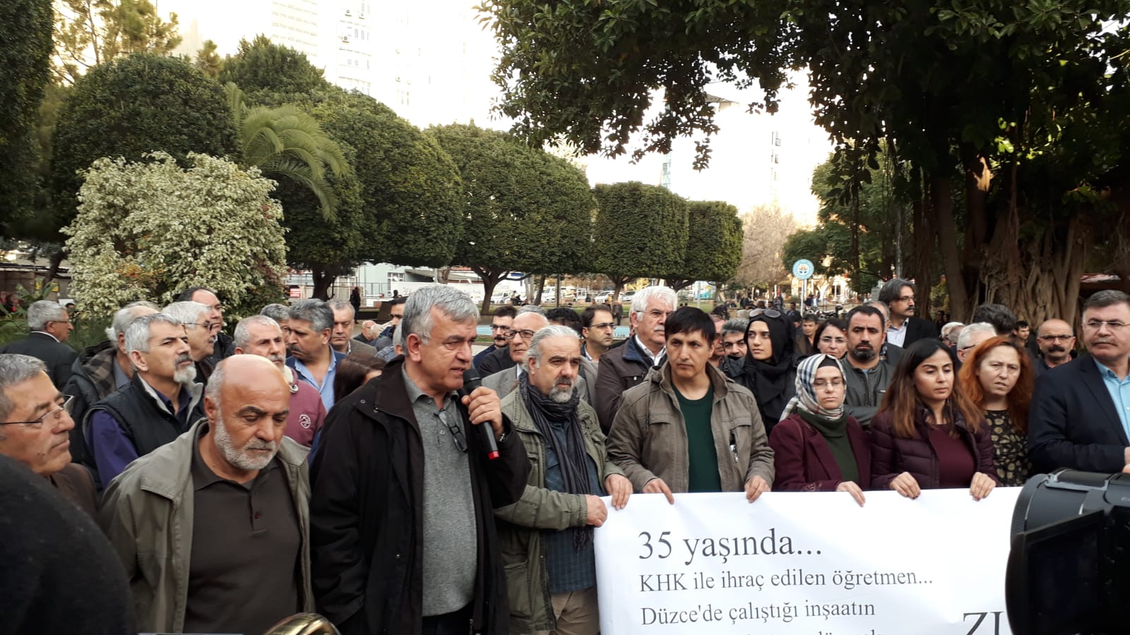 Eğitim Sen, İHD Adana Şubeleri ve KHK Mağdurları, 1 Şubat günü Düzce’de çalıştığı inşaatın 4’üncü katından asansör boşluğuna düşerek yaşamını yitiren KHK mağduru ihraç öğretmen Kazım Kurnaz (35) için basın açıklaması yaptı.