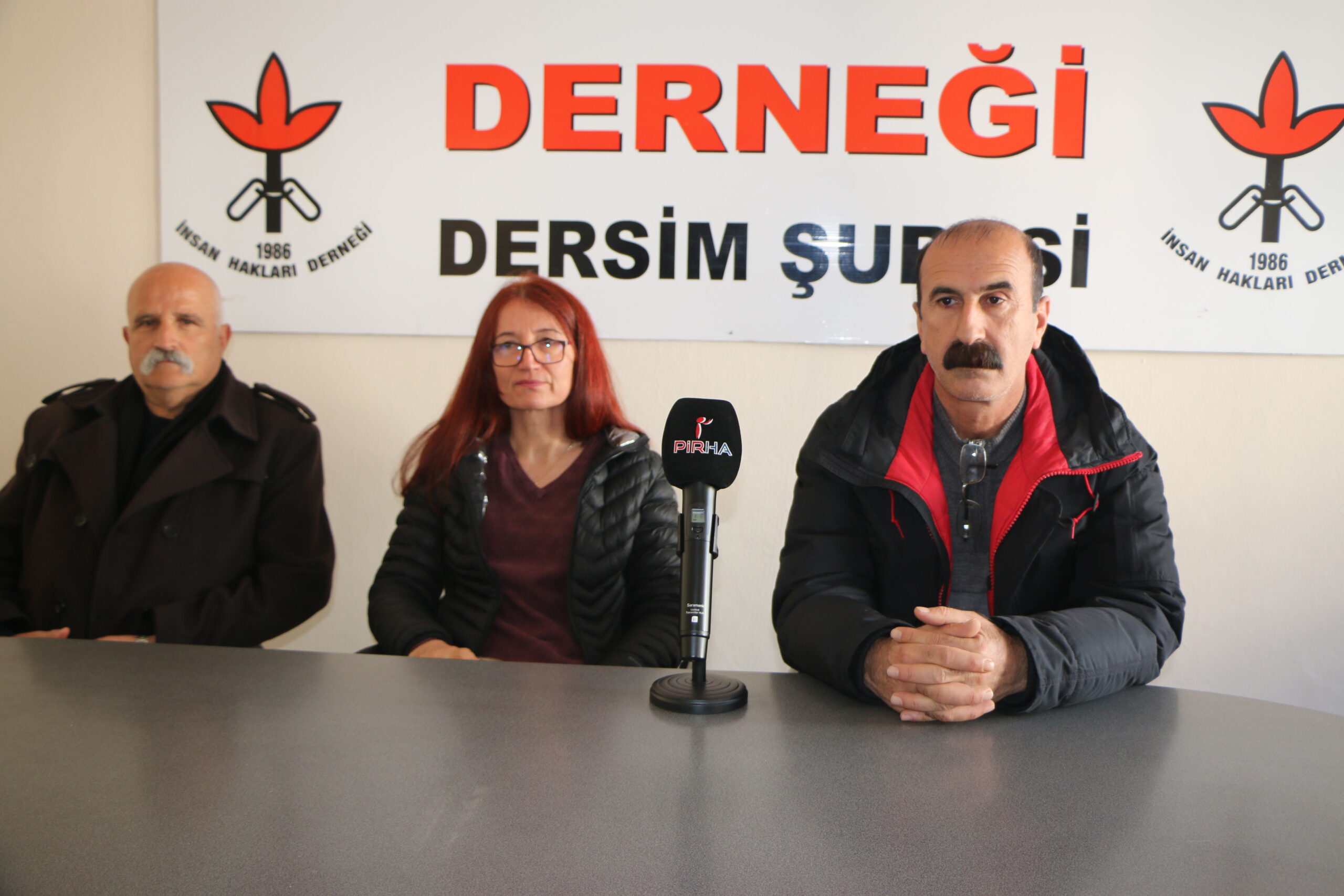Uzun süreden beri insan hakları savunucularına yönelik baskı politikalarının olduğunu söyleyen İHD Dersim Şube Eş Başkanı Gürbüz Solmaz, “Eş genel başkanlarımız Öztürk Türkdoğan ve Eren Keskin hakkında da davalar açılmıştır. Uzun süreden beri bu baskılar devam ediyor, insan haklarını savunmak suç değildir. İçişleri Bakanı Süleyman Soylu önceki dönemde yaptığı açıklamada derneğimizi hedef gösterdi, bu süreç tüm hızıyla devam ediyor. Yarın (17 Şubat) eş genel başkanımız Eren Keskin’in Dersim’de duruşması var. Munzur Doğa ve Kültür Festivali’nde bir panelde yapmış olduğu konuşmadan dolayı bir dava açılmıştır. Duruşma öncesinde bütün Dersim emek ve demokrasi bileşenlerinin duruşmada destek vermesini bekliyoruz. İnsan hakları savunucularına haksız ve hukuksuz bir şekilde açılan soruşturmaları kabul etmiyoruz” dedi.