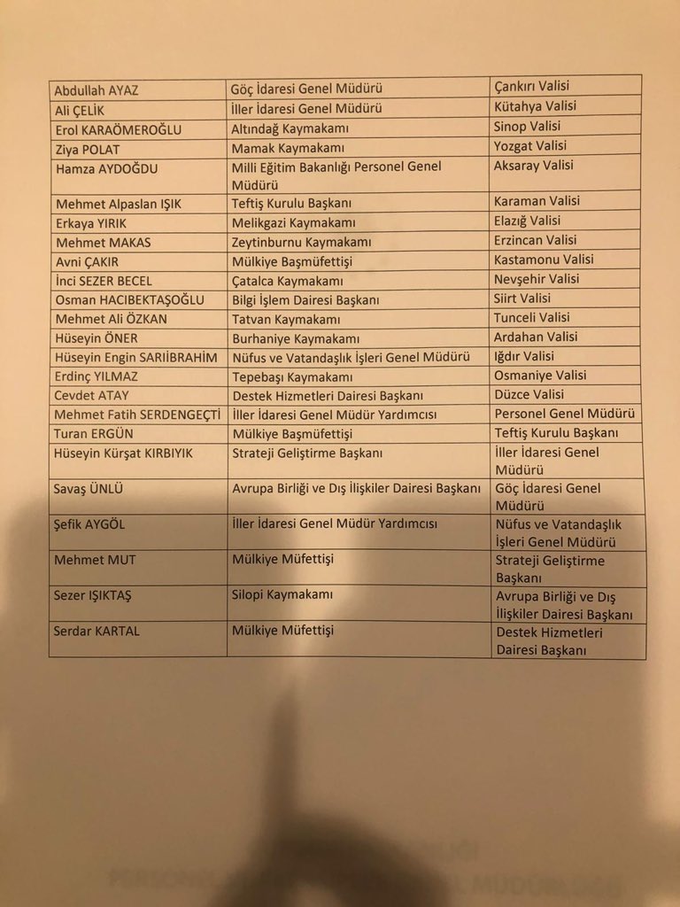Cumhurbaşkanı Erdoğan’ın imzası ile yayımlanan atama kararına göre 33 ilin valisi değişti, 17 ilin valisi merkeze alındı.