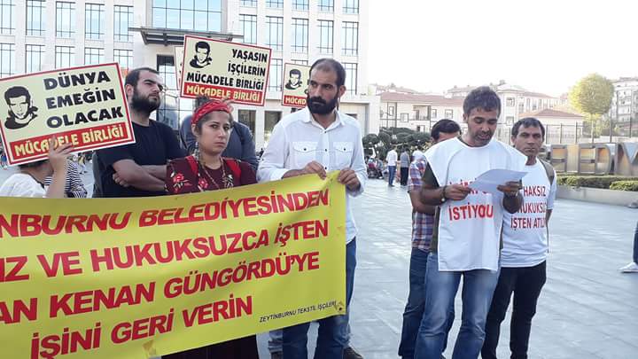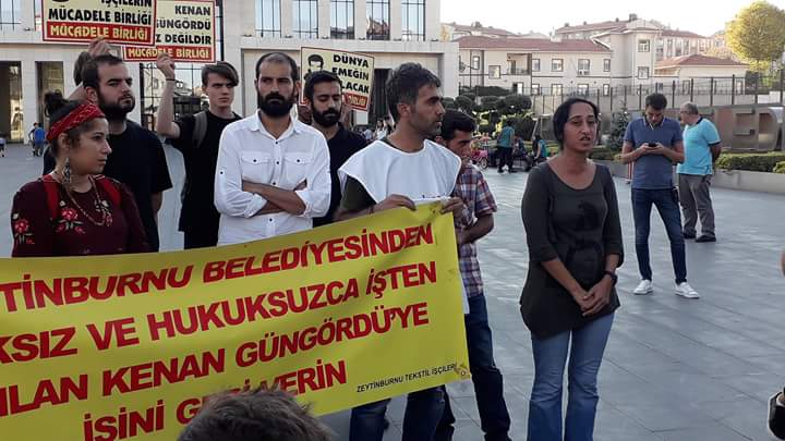 20 yıl boyunca İstanbul Zeytinburnu Belediyesi’nde çalışan işçi Kenan Güngördü, OHAL sonrası yayınlanan KHK’lerle işinden atıldı. 170 gündür işine geri dönmek için mücadele eden Güngördü, bugün de Zeytinburnu Belediyesi’nin önünde eylem gerçekleştirdi.