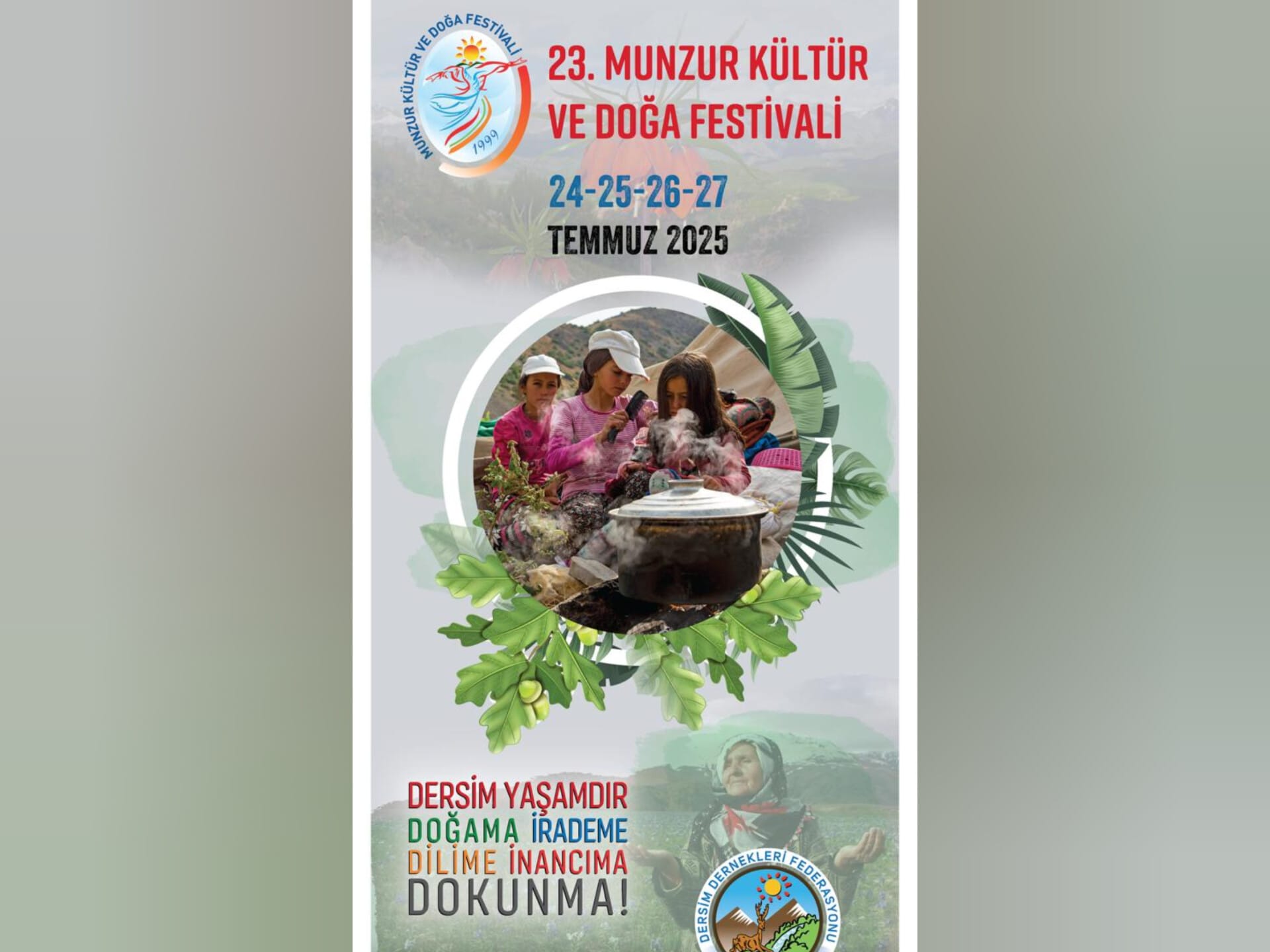 23. Munzur Kültür ve Doğa Festivali 24-27 Temmuz tarihlerinde gerçekleştirilecek. Festivalin ana teması ise “Dersim Yaşamdır; Doğama, İrademe, Dilime, İnancıma Dokunma” olacak.