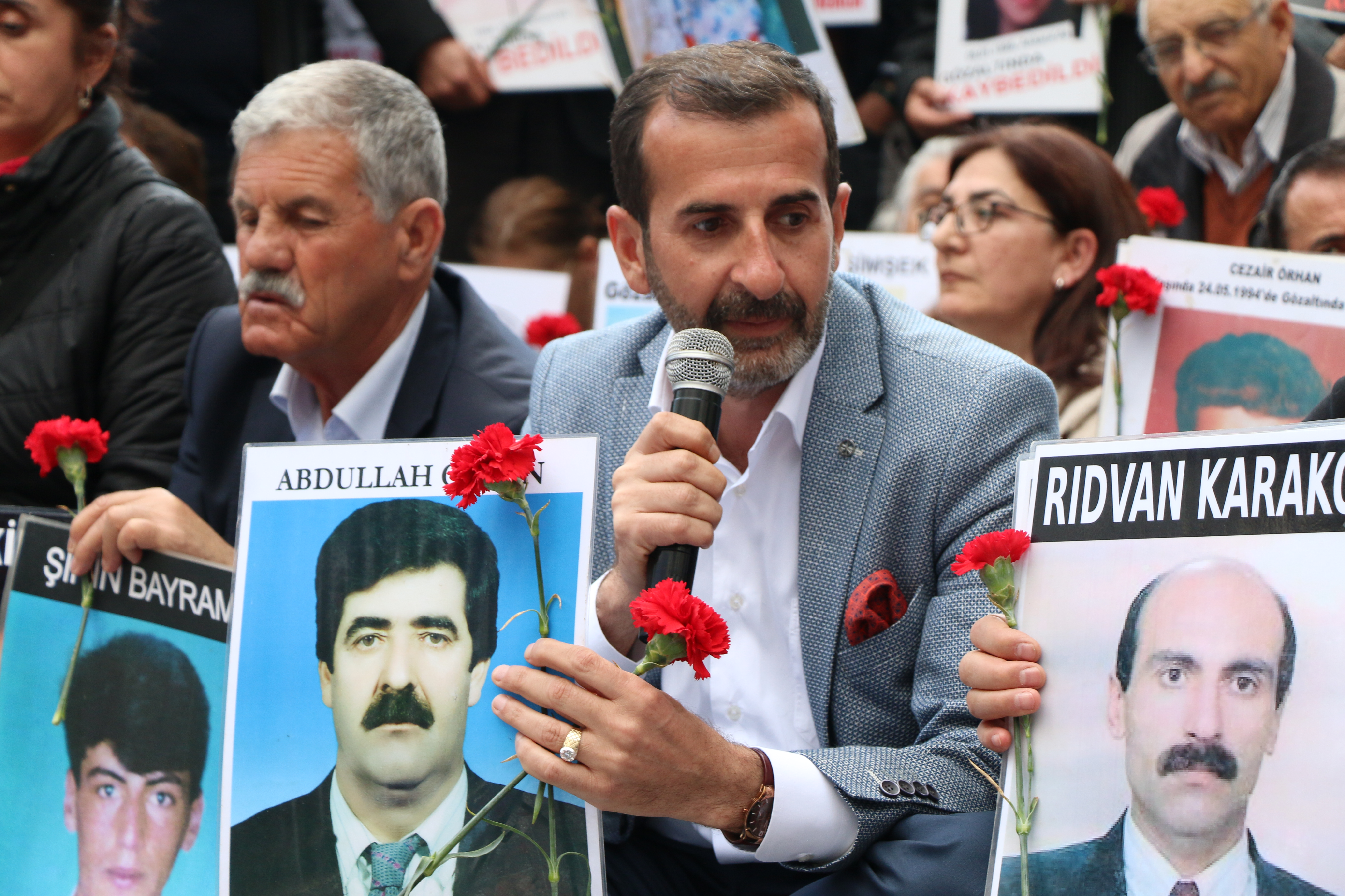 Abdullah Canan’ın oğlu Tayyip Canan eylemdeki ilk sözü alarak “Ben burada resimlere bakarken Mikdat Özeken ve Münür Sarıtaş’ın fotoğraflarını gördüm. Yüksekova çetesi tarafından katledildiler ve çocuktular. ‘Bu çocukların suçu nedir’ diye sorarsanız gözaltına alınan Abdülkerim Yurtseven’in gözaltına alınmasının tanığıydılar. Münür Sarıtaş’ın bu hayatta tek fotoğrafı var o da bu alanda” dedi.