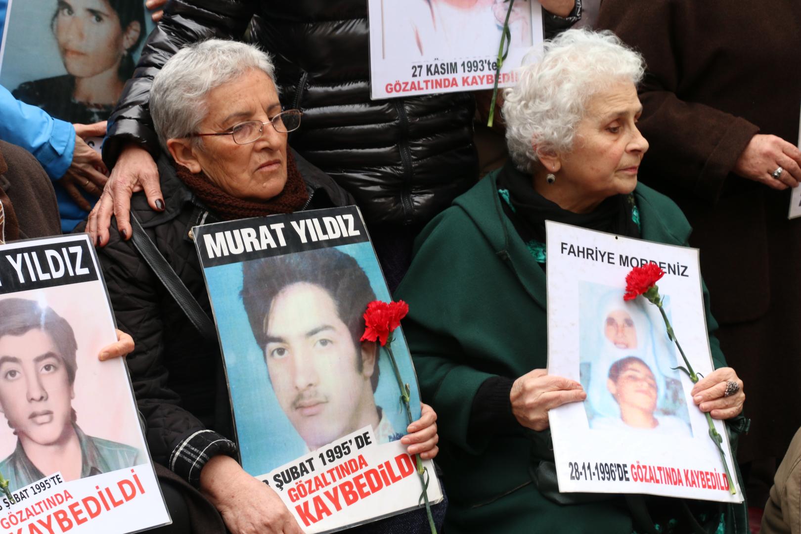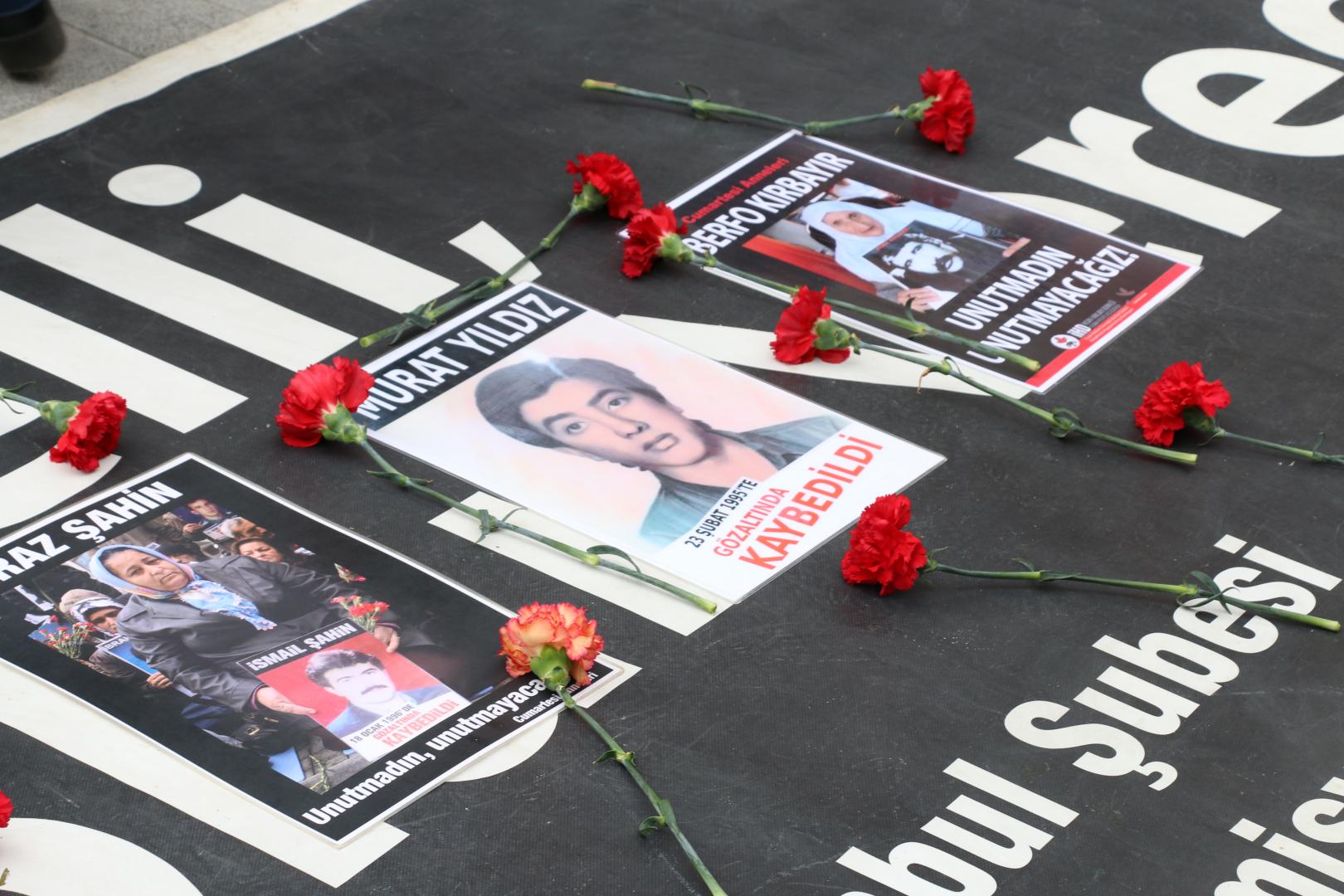 Cumartesi Anneleri’nin Galatasaray Meydanı’nda devam eden eylemi 674. haftasında. Eylemde açılan “Failler belli, kayıplar nerede?” pankartının üzerine, Murat Yıldız’ın fotoğrafları, kırmızı karanfiller ve barışı temsilen beyaz tülbentler bırakıldı.