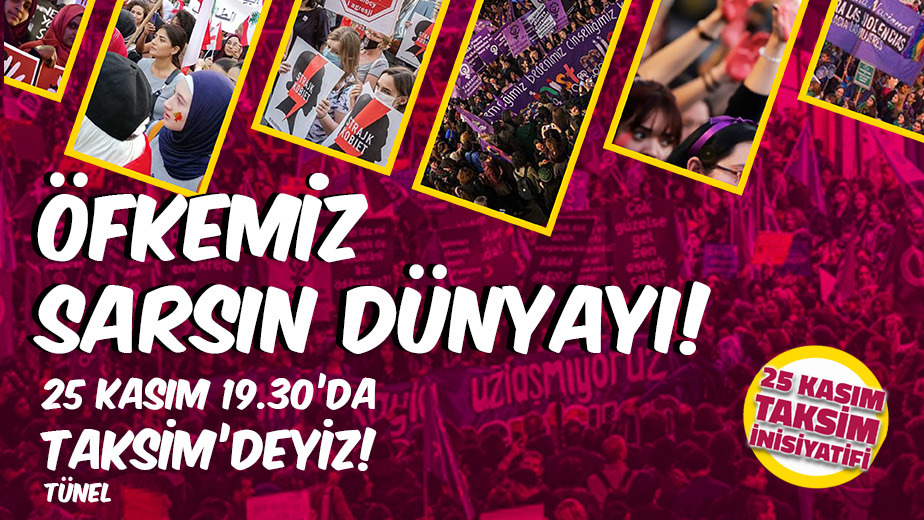 “Öfkemiz sarsın dünyayı” sloganıyla çağrı yapan 25 Kasım Taksim İnisiyatifi’nin çağrısı şöyle: