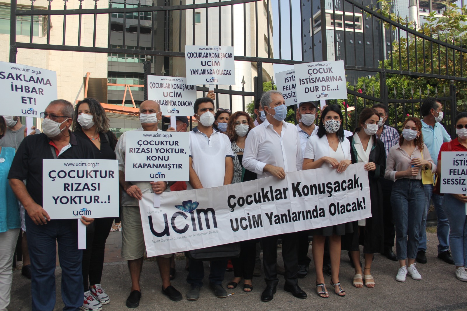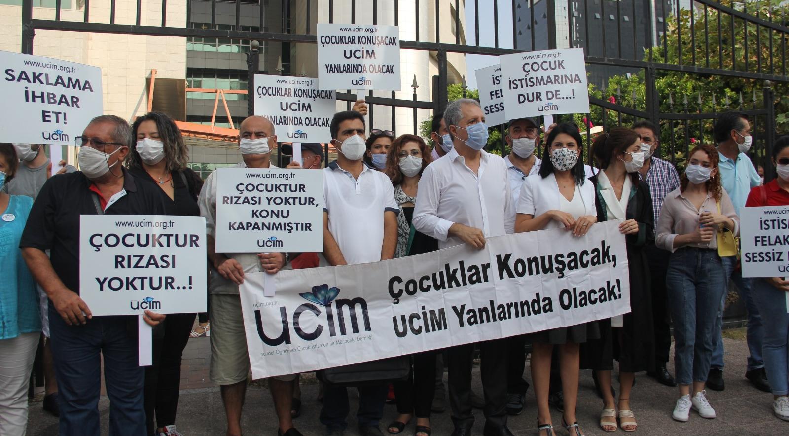 Açıklamada “Çocukları konuşacak, UCİM yanlarında olacak” pankartı açılırken, “Çocuktur, rızası yoktur, konu kapanmıştır”, “Çocuk istismarına dur de” ve “İstismar felakettir sessiz kalma” dövizleri taşındı. Eyleme CHP Mersin Milletvekili Alpay Antmen de destek verdi.