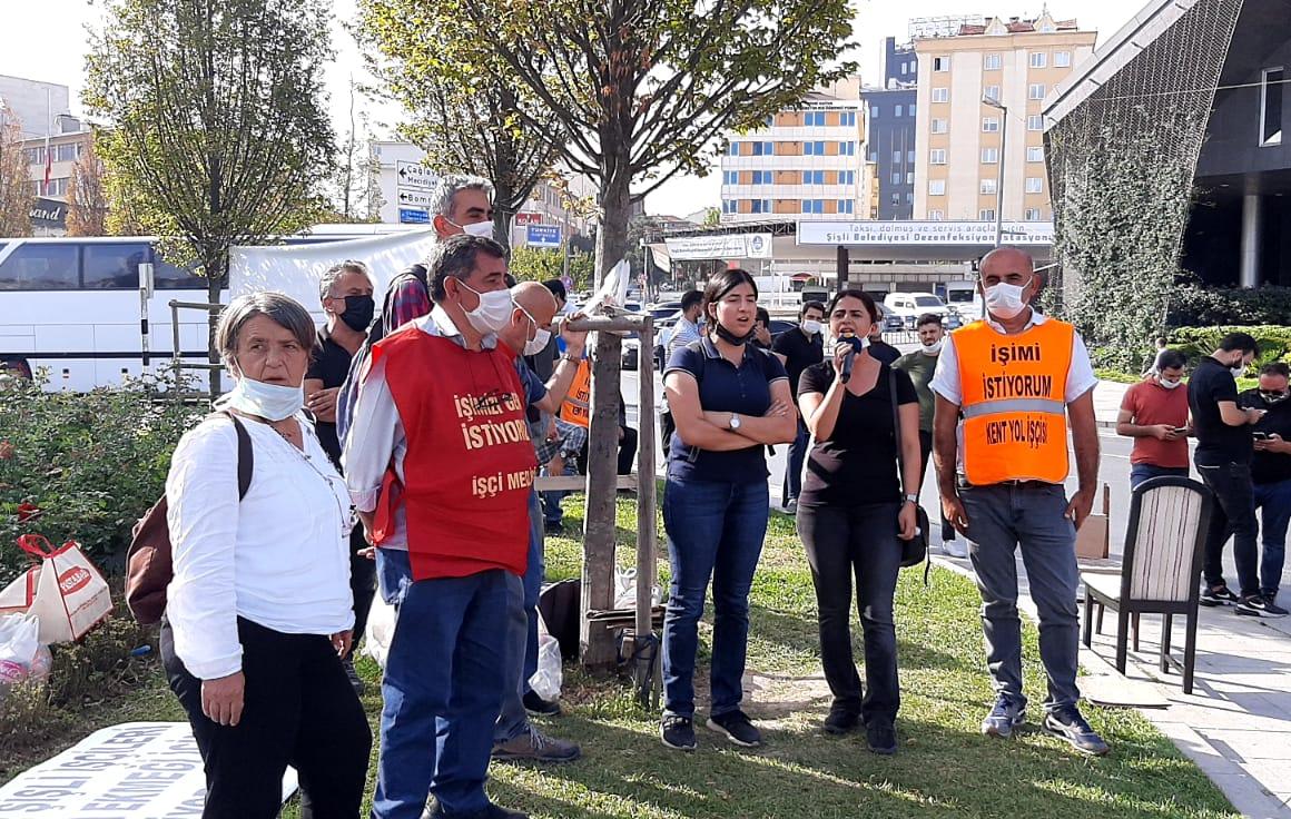 “ 2015 yılında Şişli Belediyesi’nde taşeron olan Atlas özel şirketinde işe başladım. Aralık 2017 yılında çıkan bir kanun hükmünde kararname sonucu Şişli Belediyesinin kurduğu Kent-yol şirketine Nisan 2018 tarihi itibariyle geçiş yaptık. Biz taşeron yasasıyla geçiş yaptığımızda OHAL vardı. O yüzden bir şey yapamadık. Bizim yanımızda çalışan Kent-Yol’dan arkadaşlarımız vardı. Biz KHK’yle geçtiğimiz için bir eşitsizlik vardı. Eşit ücret alamıyorduk. Bunun için bir dava hazırladık. Davada her hangi bir çıkartma olmamıştı. Muammer Keskin belediye başkanı seçildi. Seçim esnasında bir bildirisi vardı, ‘Ben geldiğim zaman hiçbir işçinin burnu dahi kanamayacak, işinden emeğinden ekmeğinde olmayacak’ diye seçim çalışması yapan kişi gelir gelmez ilk işi beni bu davayı açtığım için işimden etmek oldu. Eylül ayında beni çıkarttılar. Ekmeğimizi istiyoruz, emeğimiz karşısında alacağımız ücreti istiyoruz. Tek talebimiz var. Sosyal haklarımızla birlikte işimize dönmek. Biz başka bir şey istemiyoruz. Bize sosyal haklarımızı ve işimizi istiyoruz. Ekmeğimizi istiyoruz. Biz başka bir şey istemiyoruz.”