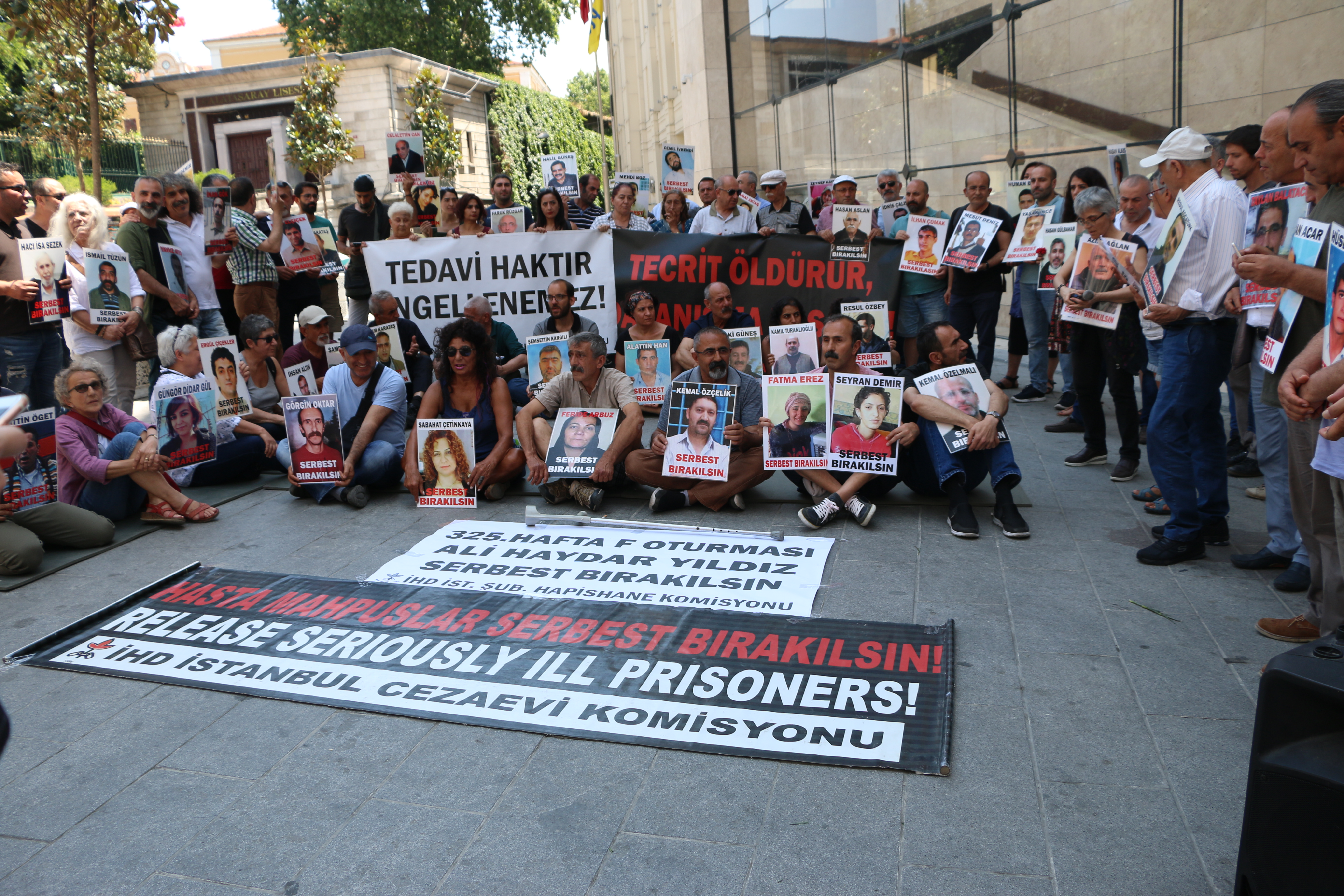 “Hasta mahpuslar serbest bırakılsın”, “Ali Haydar Yıldız serbest bırakılsın”, “Tecrit öldürür dayanışma yaşatır”, “Tedavi haktır engellenemez” yazılı pankartların açıldığı eylemde sık sık “”Hasta mahpuslar serbest bırakılsın”, “Ali Haydar Yıldız serbest bırakılsın”, “Tecrit öldürür dayanışma yaşatır”, “Tedavi haktır engellenemez”, “OHAL işkencesine son”, Onursuz arama işkencesine son”, “İnsan haklarıyla insandır”, “Tek tip elbiseye hayır”, “İnsanlık onuru işkenceyi yenecek” sloganları atıldı.