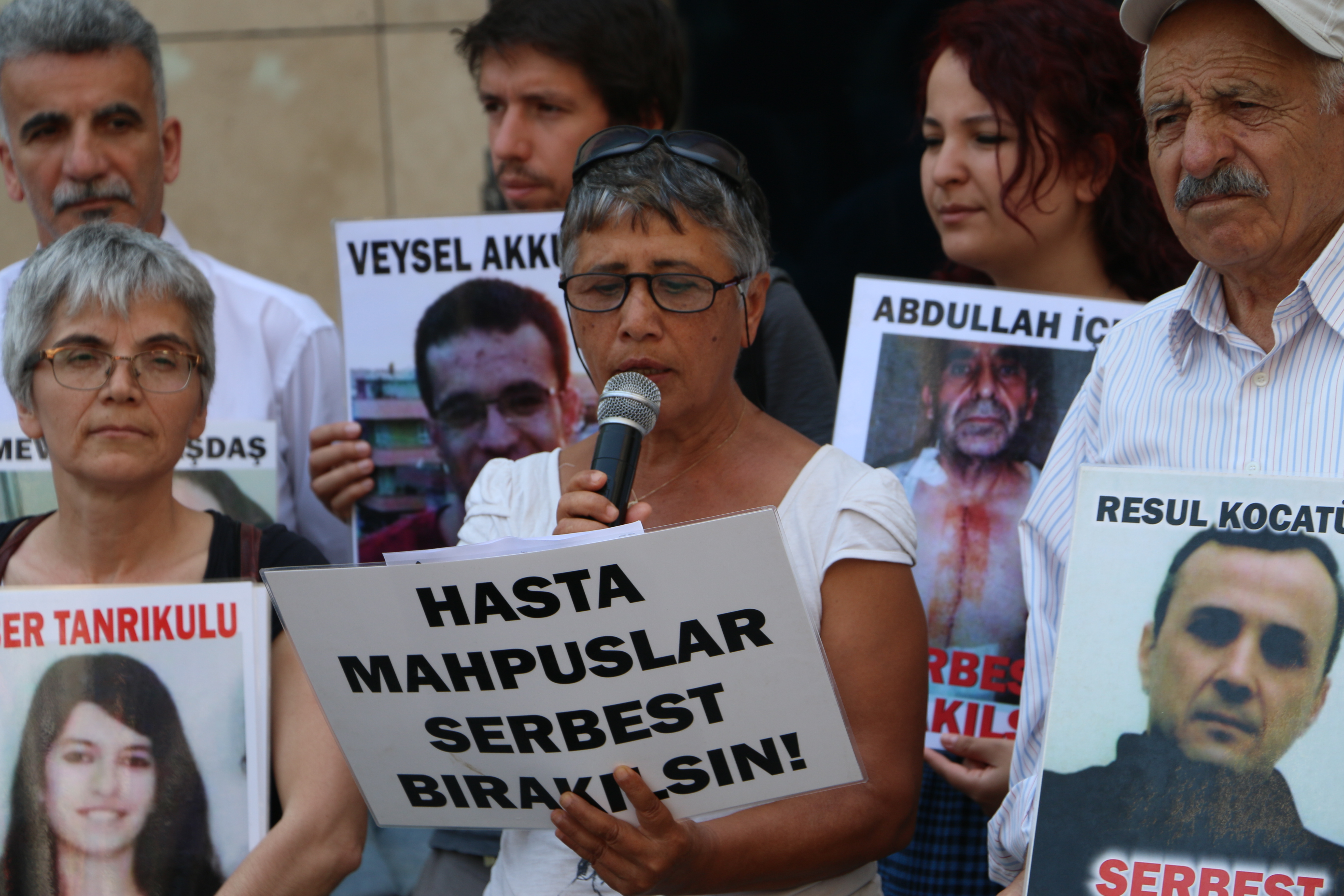 Basın açıklamasını okuyan insan hakları savunucularından Seza Mis Horuz, Türkiye genelinde bulunan hapishanelerden sadece iki tanesinin R Tipi hapishane olduğunu belirterek, “Bu hapishaneler kendi ihtiyacını karşılayamayacak derecede sağlık sorunları olan mahpuslar için yapılmıştır” dedi. Bu hapishanelerde sürekli sağlık ve bakım işini yapacak personel bulundurma zorunluluğuna rağmen birlikte kalan tutukluların birbirlerine yardım etmek zorunda kaldıklarını ifade eden Horuz, “Zaten kendisine bakamayan bir mahpus diğer bir mahpus arkadaşının yarasını temizlemek hatta zorunlu ihtiyaçlarını dahi karşılamak durumda kalmaktadır.” şeklinde konuştu.