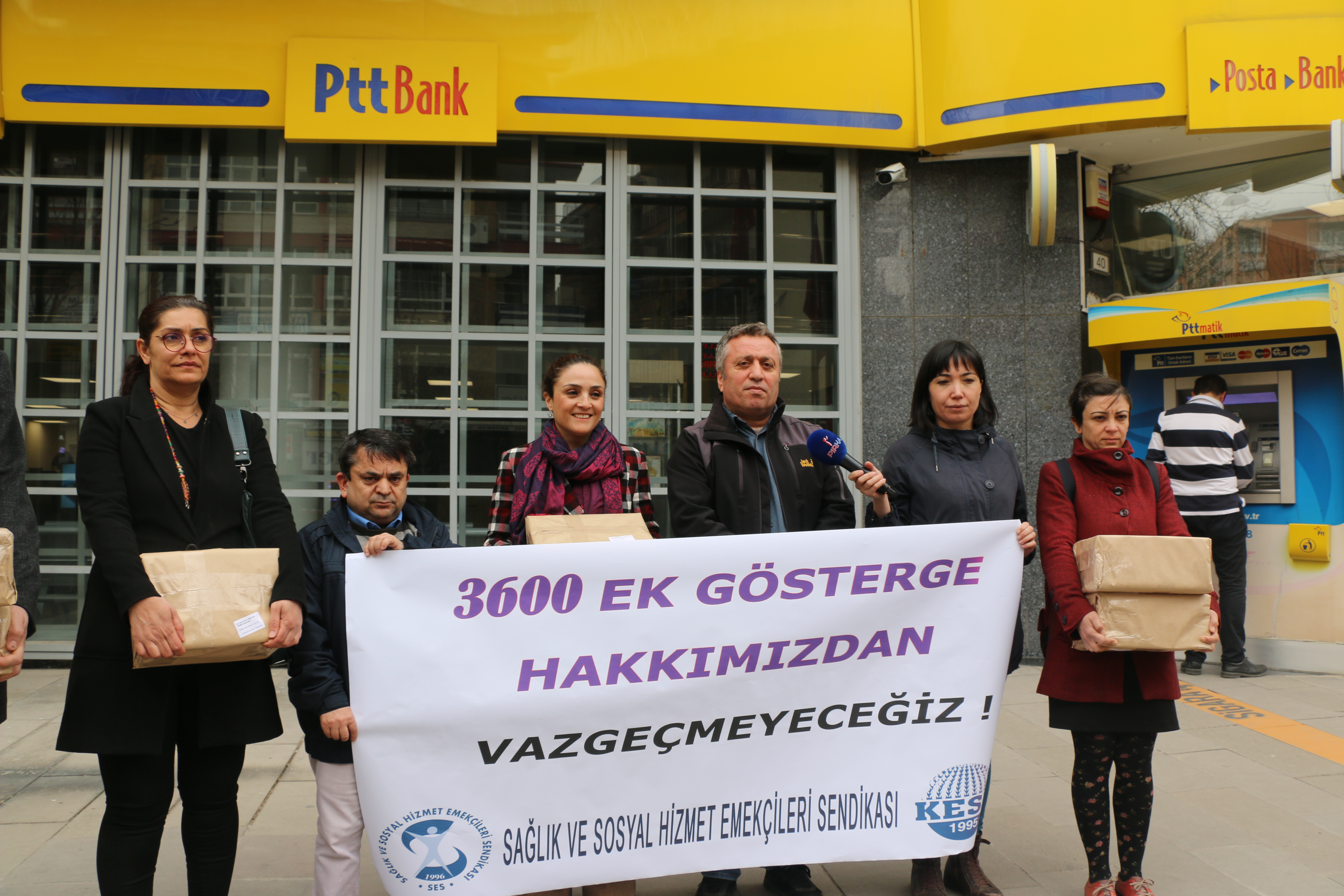 3600 ek gösterge talepleri için 9 Ocak-9 Şubat tarihleri arasında toplamış oldukları imzaları TBMM’ye ve TBMM’de grubu bulunan siyasi partilere göndermek Kızılay İzmir PTT’ önünde bir araya gelen Sağlık ve Sosyal Emekçiler Sendikası (SES) MYK üyeleri konu ile ilgili bir basın açıklaması gerçekleştirdi.