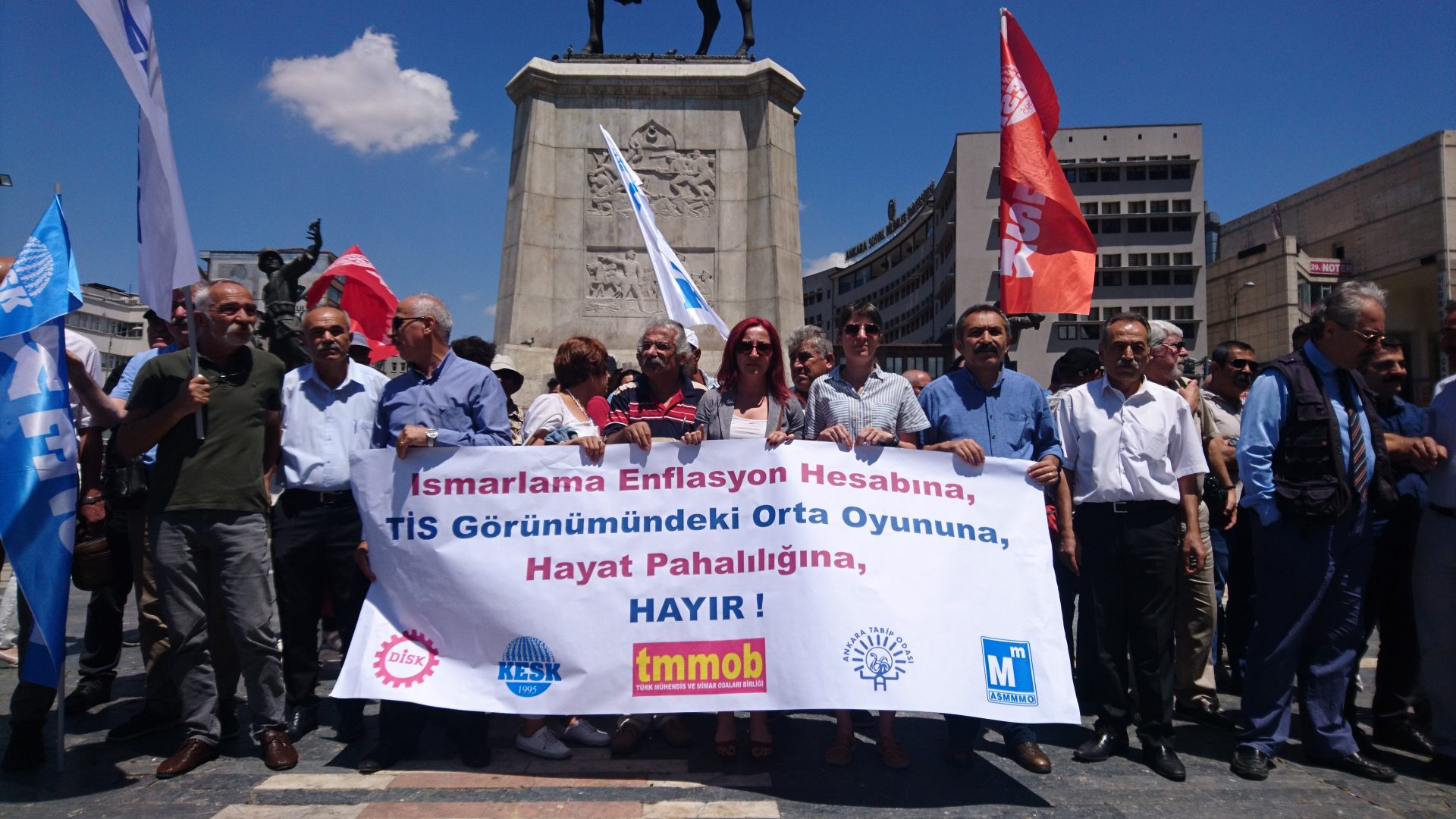 “Maaşlarımızdaki erime sürmektedir. Hedeflenen enflasyon oranlarına, hatta bazen bunun bile altındaki rakamlara imza atanların ‘tarihi başarıları’ sayesinde maaşlarımız her yıl açlık sınırına daha fazla yaklaşmıştır.