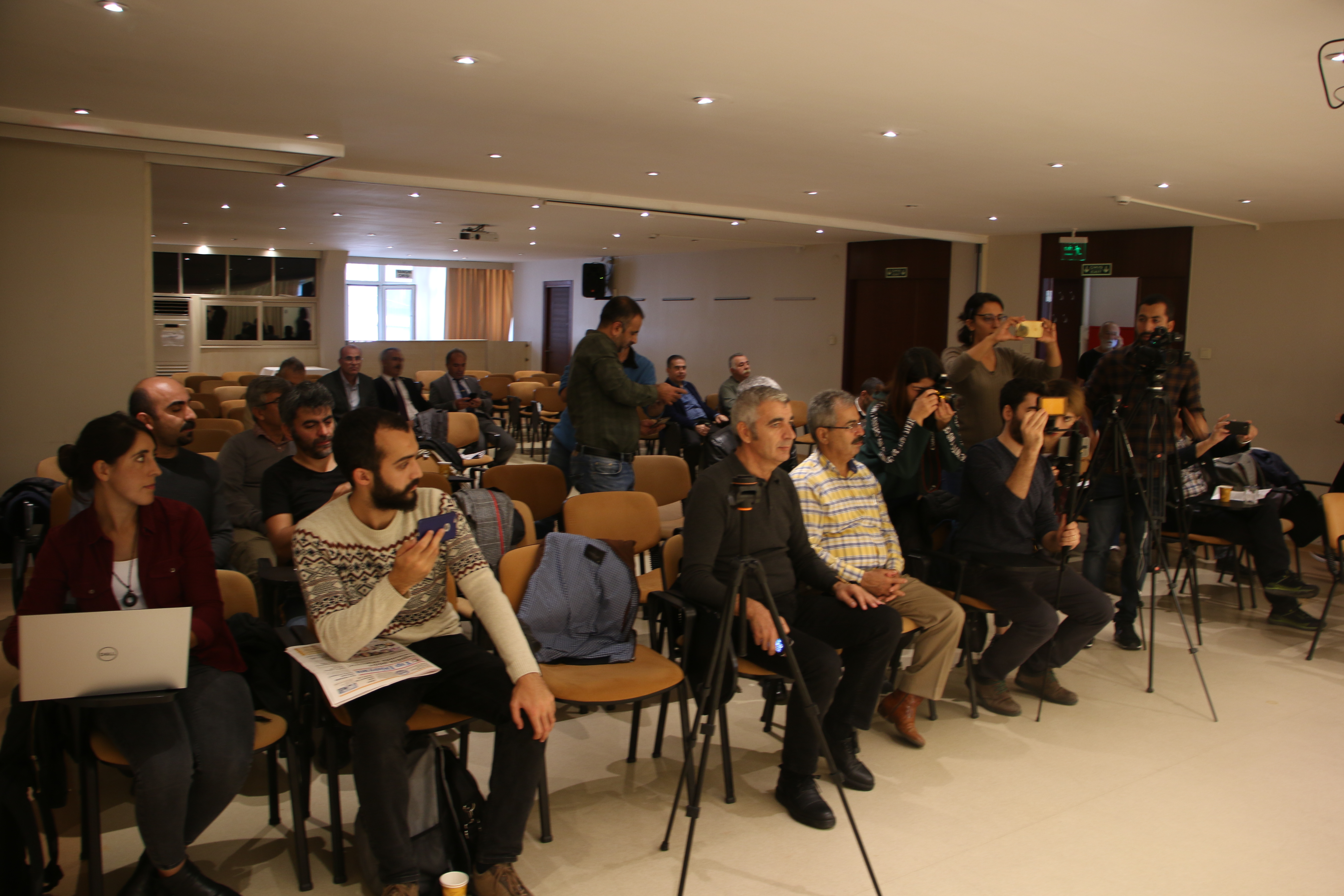 Tüm kurumlar adına ortak metni DİSK Gıda-İş Sendikası Genel Başkanı Seyit Aslan okudu. Taleplerinin karşılanması için meşru yollardan hak arayan 3. Havalimanı işçilerinin taleplerini karşılamak yerine kolluk kuvvetlerinin işçileri gaz bombaları ve plastik mermilerle saldırarak onları gözaltına aldığını söyleyen Aslan, bu saldırı ve baskılar sonucu yüzlerce inşaat işçisinin ve onlarca sendikacının tutuklandığını kaydetti.