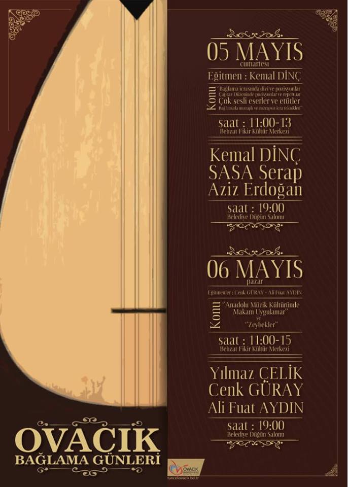 Ovacık Bağlama Günleri, 5-6 Mayıs’ta Behzat Firik Kültür Merkezi ve Belediye Düğün Salonu’nda gerçekleşecek.