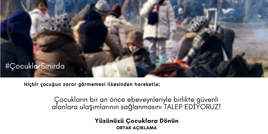 “Ülkelerinde süren savaşlar nedeniyle göç etmek zorunda kalarak Türkiye’ye sığınan insanlar, Türkiye Hükümeti’nin Avrupa’ya geçiş için sınır kapılarını açacağını duyurması üzerine 28 Şubat’tan bu yana sınır kapılarına ve düzensiz geçiş noktalarına doğru hareket etti. Şu anda sınırda bekleyen yaklaşık 15 bin mülteci olduğunu ve bu grubun büyük bir çoğunluğunu çocukların oluşturduğunu bilmek oldukça endişe verici! Savaşın yerinden yurdundan ettiği çocuklar, günlerdir can güvenliği olmayan koşullarda hayatta kalmaya çalışıyorlar. Barınma, sağlık ve temel ihtiyaçların karşılanamaması, ailelerinden ayrı düşmelerine bağlı olarak refakatsiz kalmaları veya aile birleşimlerinin gerçekleşmemesi, eğitim haklarından mahrum kalmaları, ucuz işgücü olarak görülmeleri nedeniyle kayıt dışı ve yasadışı istihdam edilmeleri, silahlı çatışmalara dâhil edilmeleri, psikolojik, fiziksel ve cinsel istismar vb. pek çok hak ihlaline maruz bırakılıyorlar.”