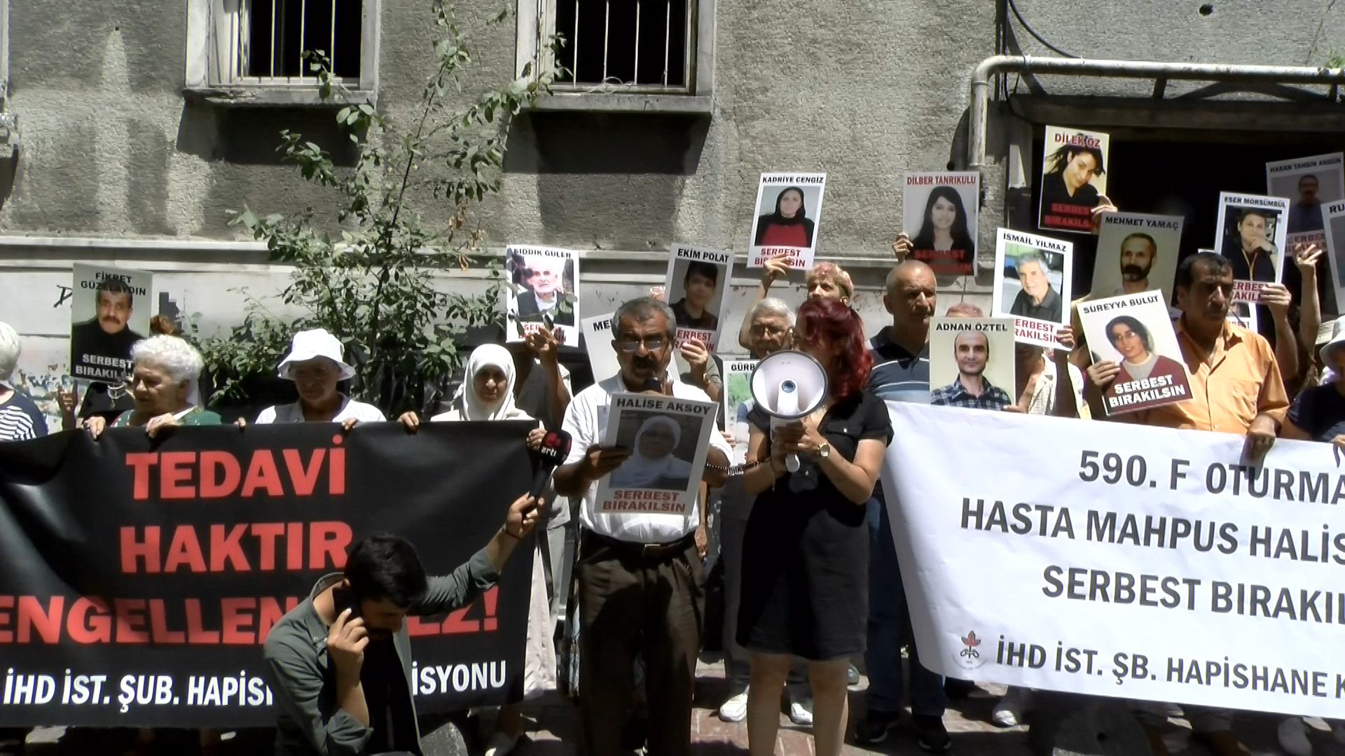 PİRHA – İnsan Hakları Derneği (İHD) İstanbul Şubesi Hapishaneler Komisyonu, hasta tutsakların durumuna dikkat çekmek amacıyla her hafta düzenlediği “F Oturumu” eyleminin 590’ıncısını dernek binası önünde gerçekleştirdi. Bu haftaki eylemde, Diyarbakır Kadın Kapalı Hapishanesinde bulunan hasta tutsak Halise Aksoy’un sağlık durumuna dikkat çekildi.
