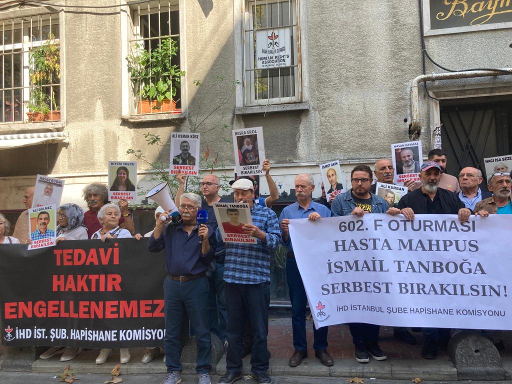 PİRHA – İnsan Hakları Derneği (İHD) İstanbul Şubesi Hapishaneler Komisyonu, hasta tutsakların durumuna dikkat çekmek amacıyla her hafta düzenlediği F Oturumu eyleminin 602.’sini dernek binası önünde gerçekleştirdi. Bu haftaki eylemde, Diyarbakır T Tipi Kapalı Hapishanesi’nde tutulmakta olan hasta mahpus İsmail Tanboğa’nın sağlık durumuna dikkat çekildi.
