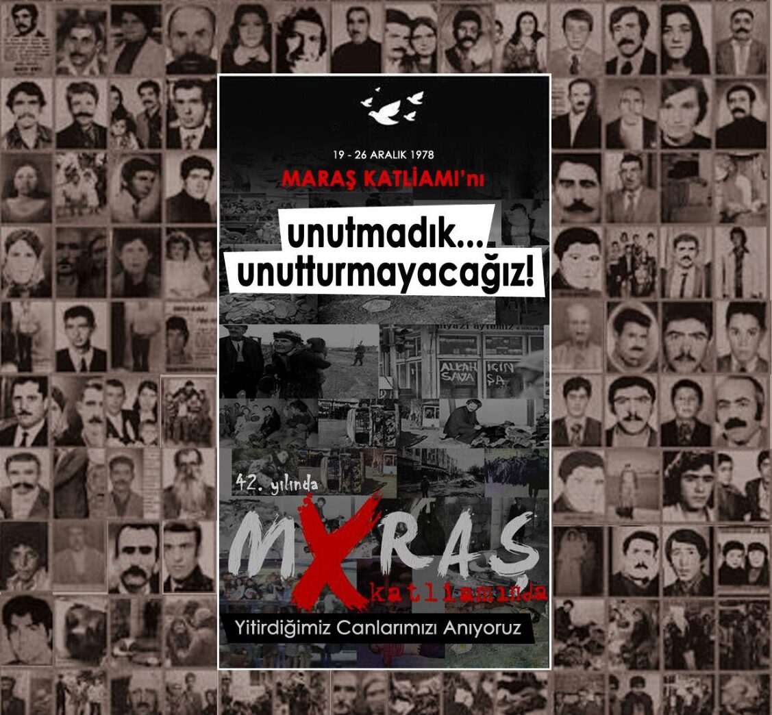 “1978 yılında Maraş’ta yaşanan ve resmi rakamlara göre 120 denilen ne yazık ki daha fazla kişinin hayatını kaybettiği, yüzlerce kişinin ise yaralandığı Maraş Katliamı’nın üzerinden 42 yıl geçti. Yaşanan bu katliam, basit bir “Alevi-Sünni” düşmanlığı ile açıklanamayacak kadar alçakça yapıldı. Noktasına, virgülüne kadar hesaplanmış, planlı ve örgütlü bir saldırıydı ve 7 gün süren katliama hiçbir müdahalede bulunulmadı.