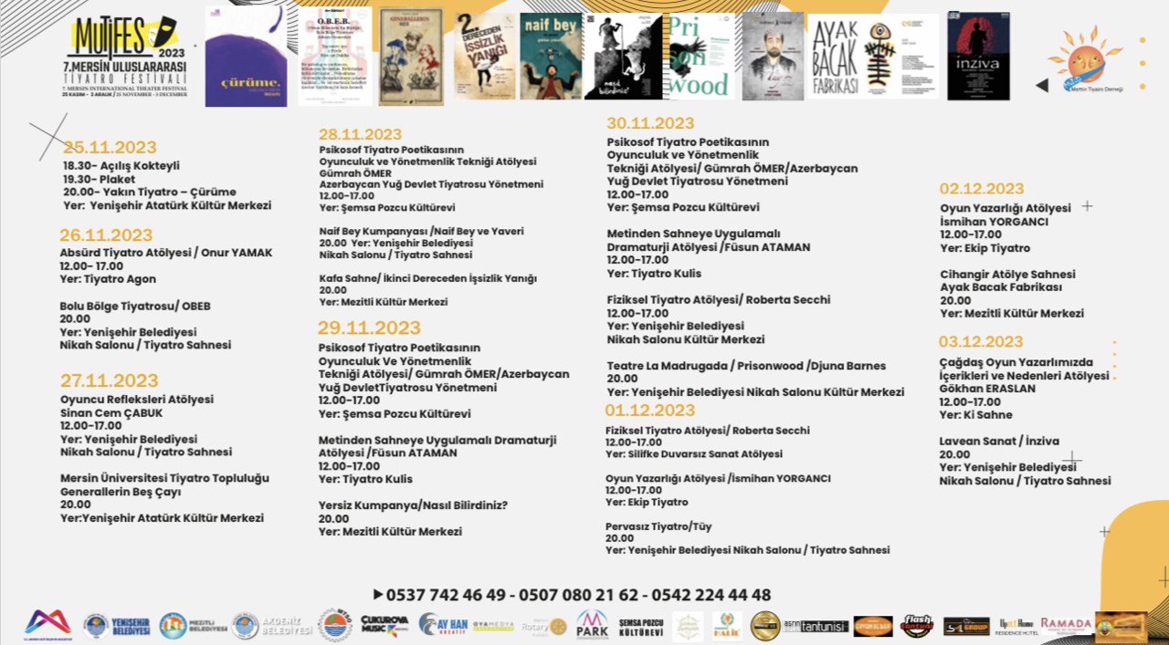 Festivalde oyunların yanı sıra oyunculuk, yönetmenlik, oyun yazarlığı atölyeleri yer alıyor.