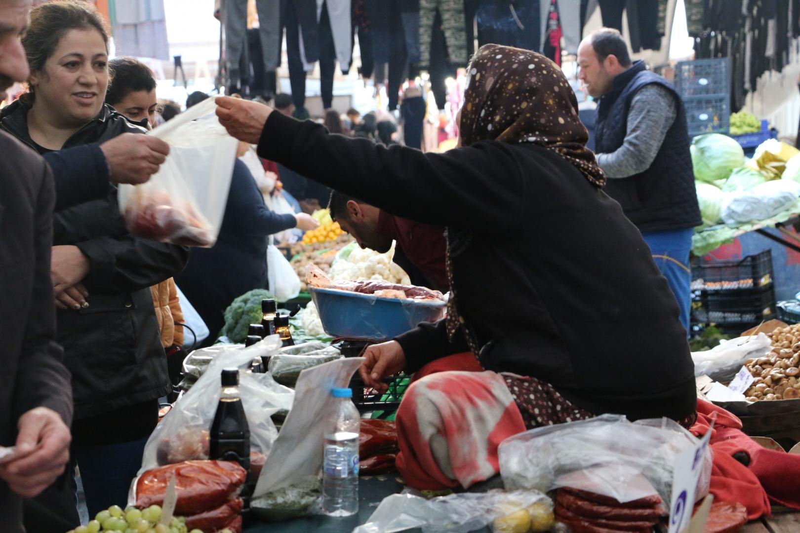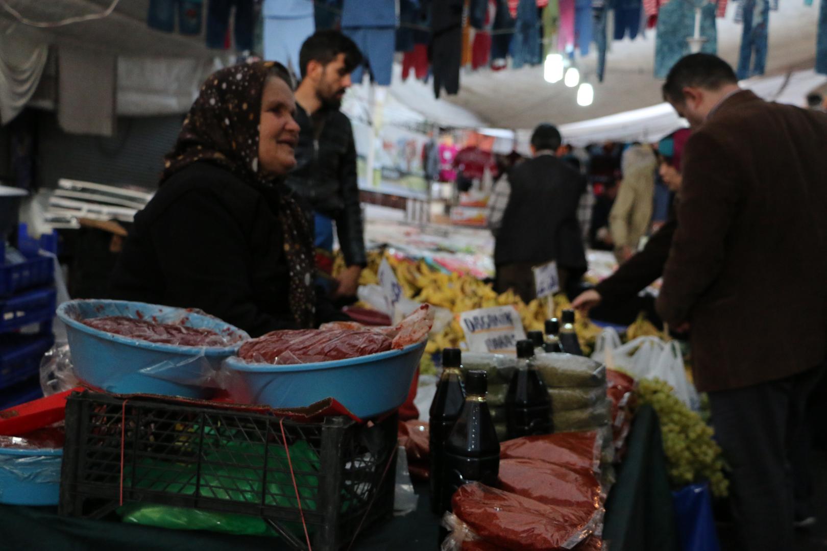 “Pazarcılık yaparak geçim sağlıyorum” diyen Emine Demir, “Biberi ben ekiyorum, naneyi dağdan topluyorum, nar ekşisini konu komşu veriyor azıcık onlara azıcık da yaparak satıyorum” diye konuşuyor.