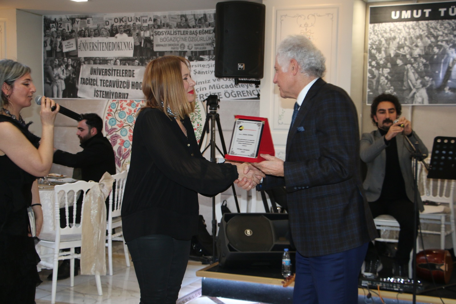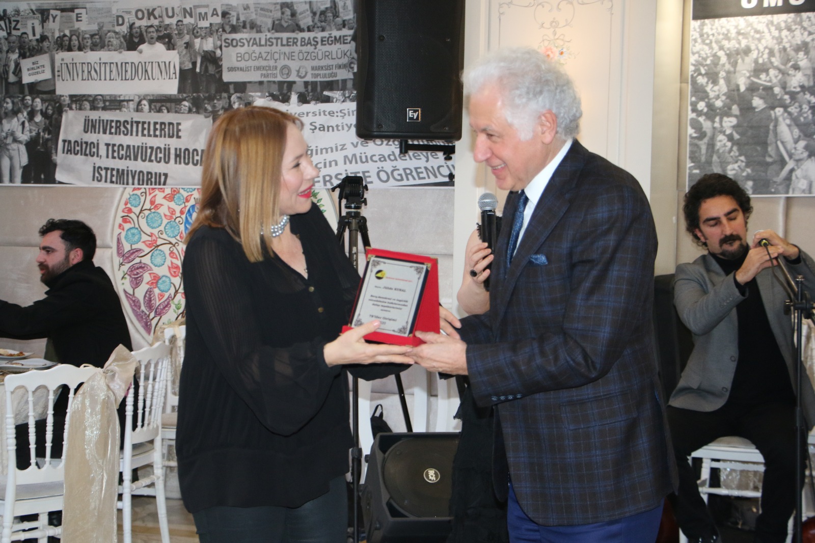 Gecede Şişli Belediye Başkanı Muammer Keskin, oyuncu Jülide Kural’a plaket verdi, plaketi aldıktan sonra konuşma yapan Kural, “Bizler sizlerin bıraktığı onurlu mücadeleyi taşımakla yükümlü bulduk kendimizi. Bundan sonra da ben bir sanat emekçisi olarak bütün dünyada yoksul halkın ve emekçilerin sömürüsüz eşit ve özür bir dünyada yaşaması için sanatımla mücadele edeceğim” dedi.