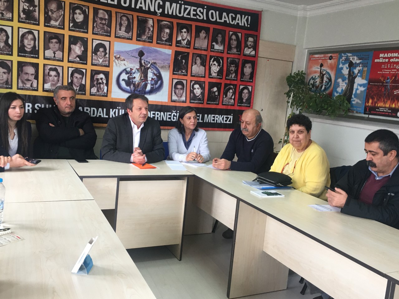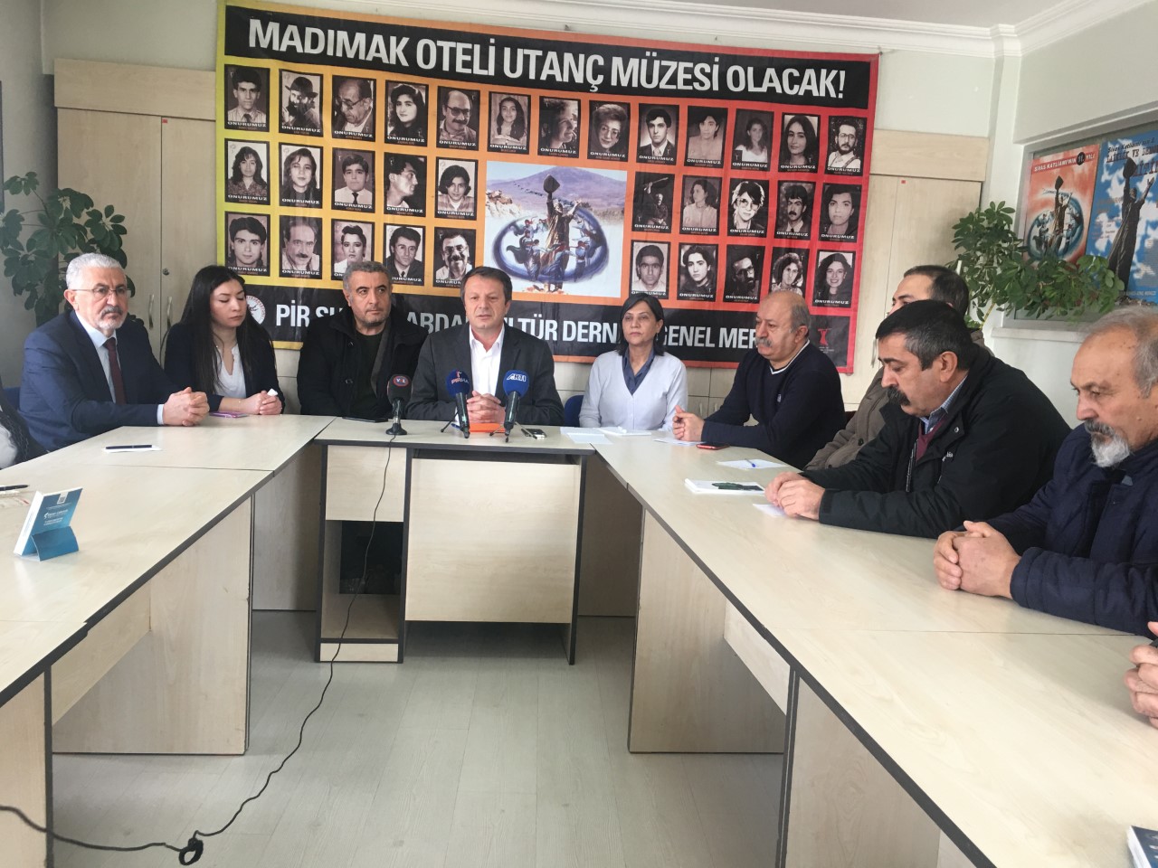 8 Şubat Cumartesi günü Cumhurbaşkanı Recep Tayip Erdoğan tarafından sağlık koşulları gerekçe gösterilerek affedilen Sivas katliamı sanığı Ahmet Turan Kılıç bırakılmasına ilişkin Adalet Bakanlığı önünde yapılacak basın açıklaması öncesi Siyasi Parti, Emek ve Meslek örgütü ve kurum temsilcileri ile PSAKD Genel Merkezinde bir araya geldi.