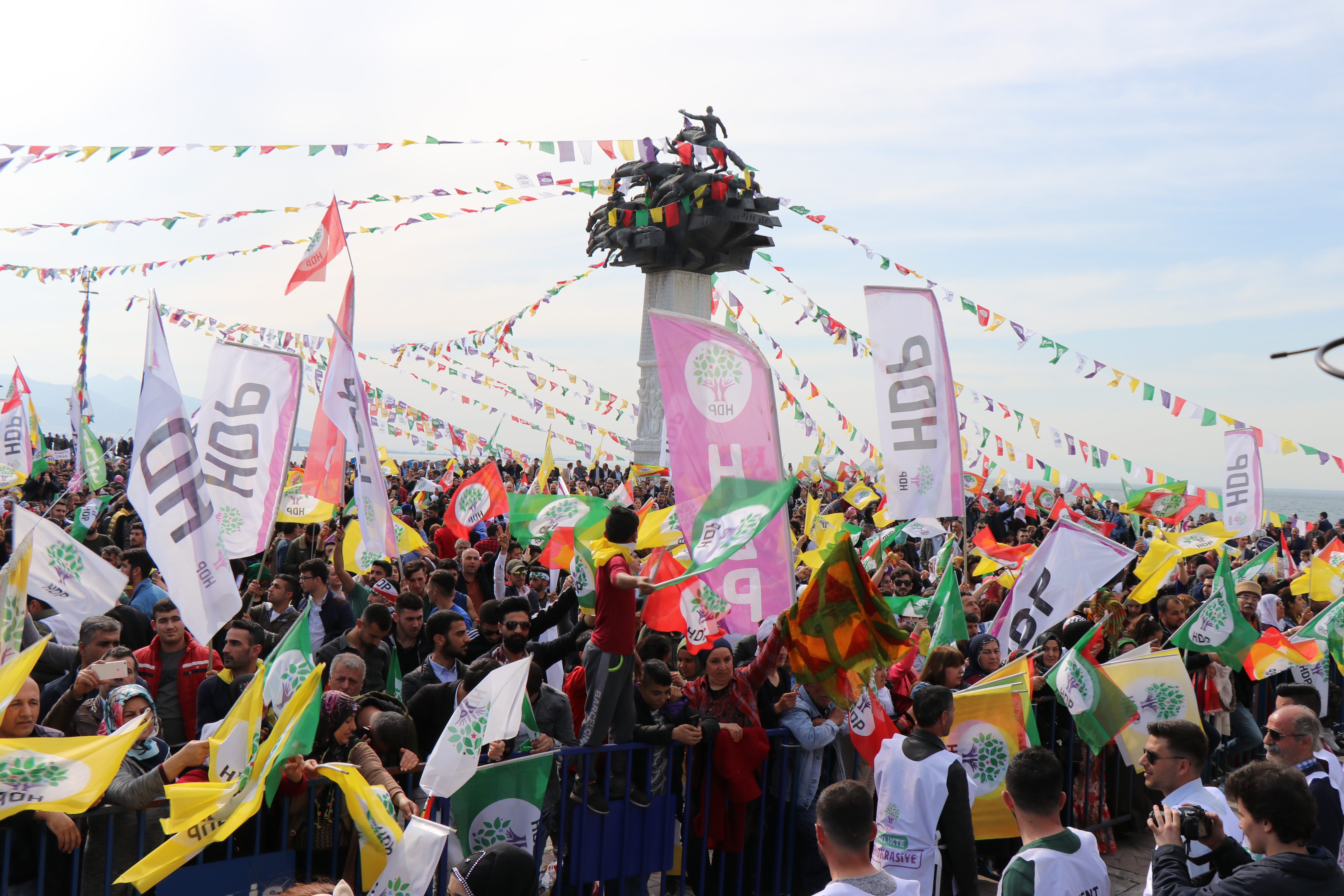 HDP Gündoğdu Meydanı’nda on binlerin katılımı ile gerçekleştirdiği Newroz kutlamasına Halkların Demokratik Kongresi (HDK) Eş Sözcüsü ve Muş Milletvekili Gülistan Kılıç Koçyiğit, Batman Milletvekili Feleknas Uca, İzmir Milletvekili Serpil Kemalbay, Kamu Emekçileri Sendikası, barış imzacısı akademisyenler, yöre derneklerinin yanı sıra çok sayıda sivil toplum örgütü temsilcisi katıldı.