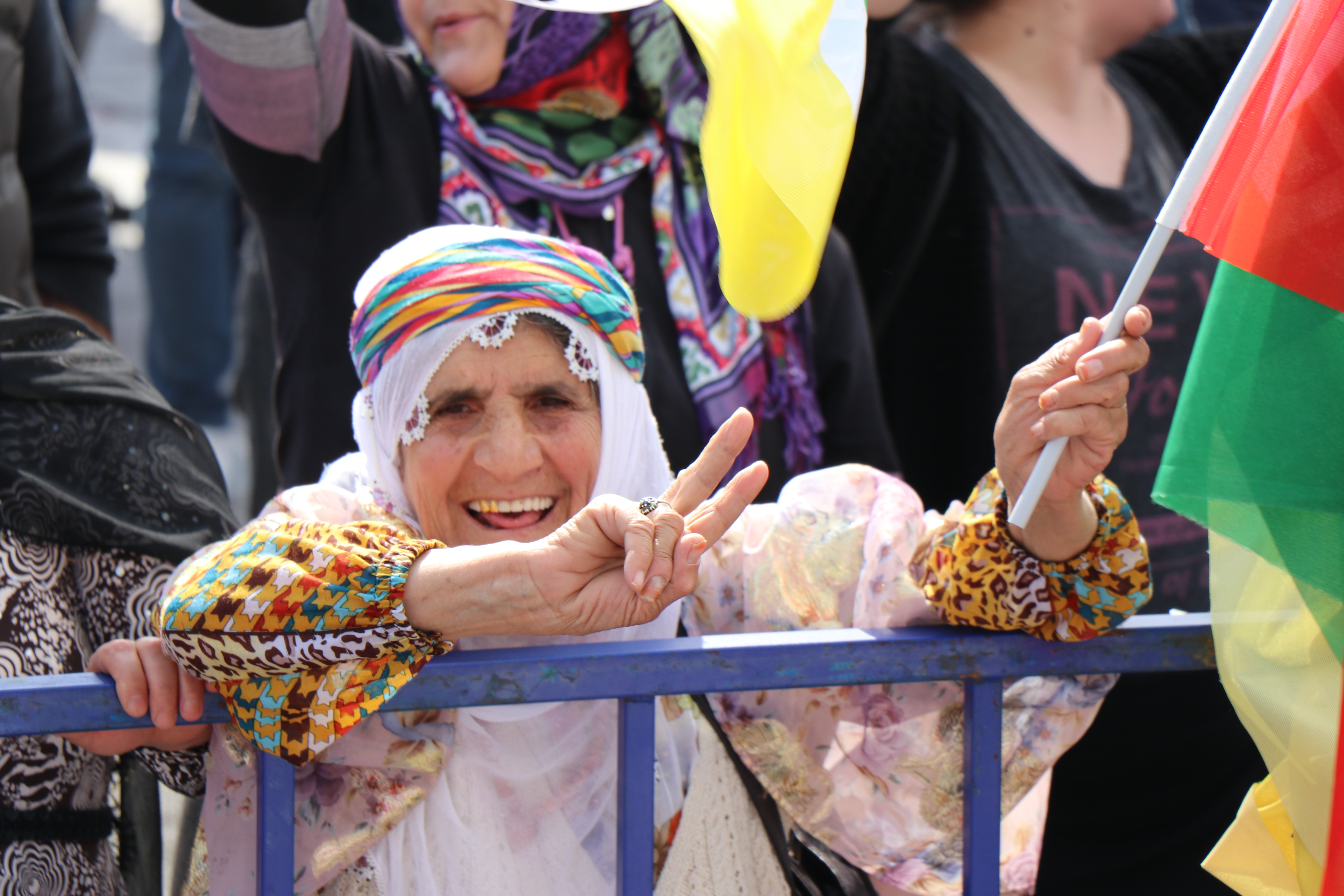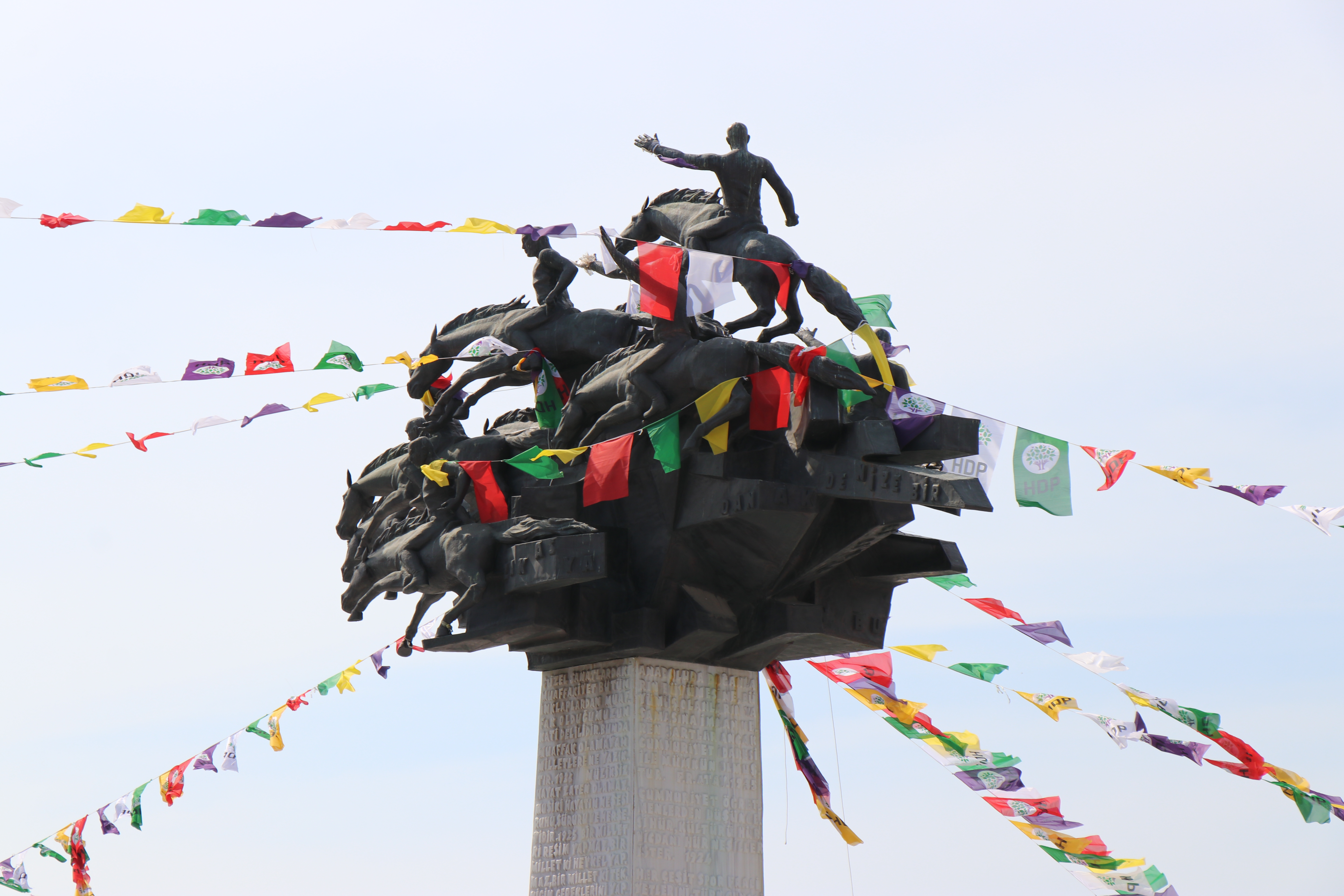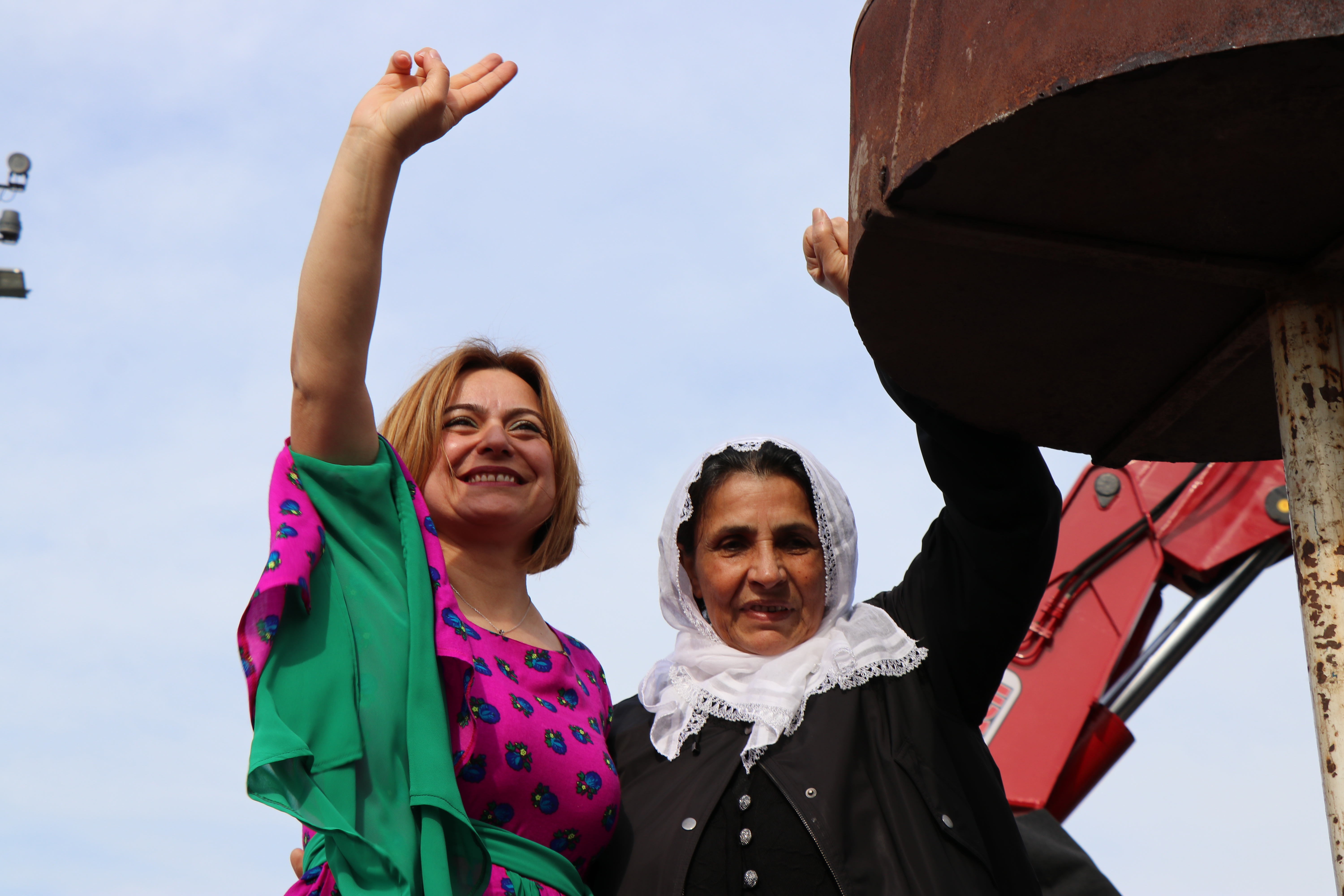 Renkli giysiler ile gelinen kutlama alanında sık sık, “Faşizm karşı omuz omuza”, “Leyla Güven onurumuzdur” ve “Direne direne kazanacağız” kazanacağız sloganları yankılandı. Saygı duruşunun ardından Gülistan Kılıç Koçyiğit ve Newroz’da bedenini ateşe veren Zekiye Alkan’ın ablası Newroz ateşini tutuşturdu. İl Eşbaşkanları Besriye Tekgür, Kadir Baydur halkı selamlarken, Barış Anneleri üyeleri sahneden barış çağrısında bulundu.