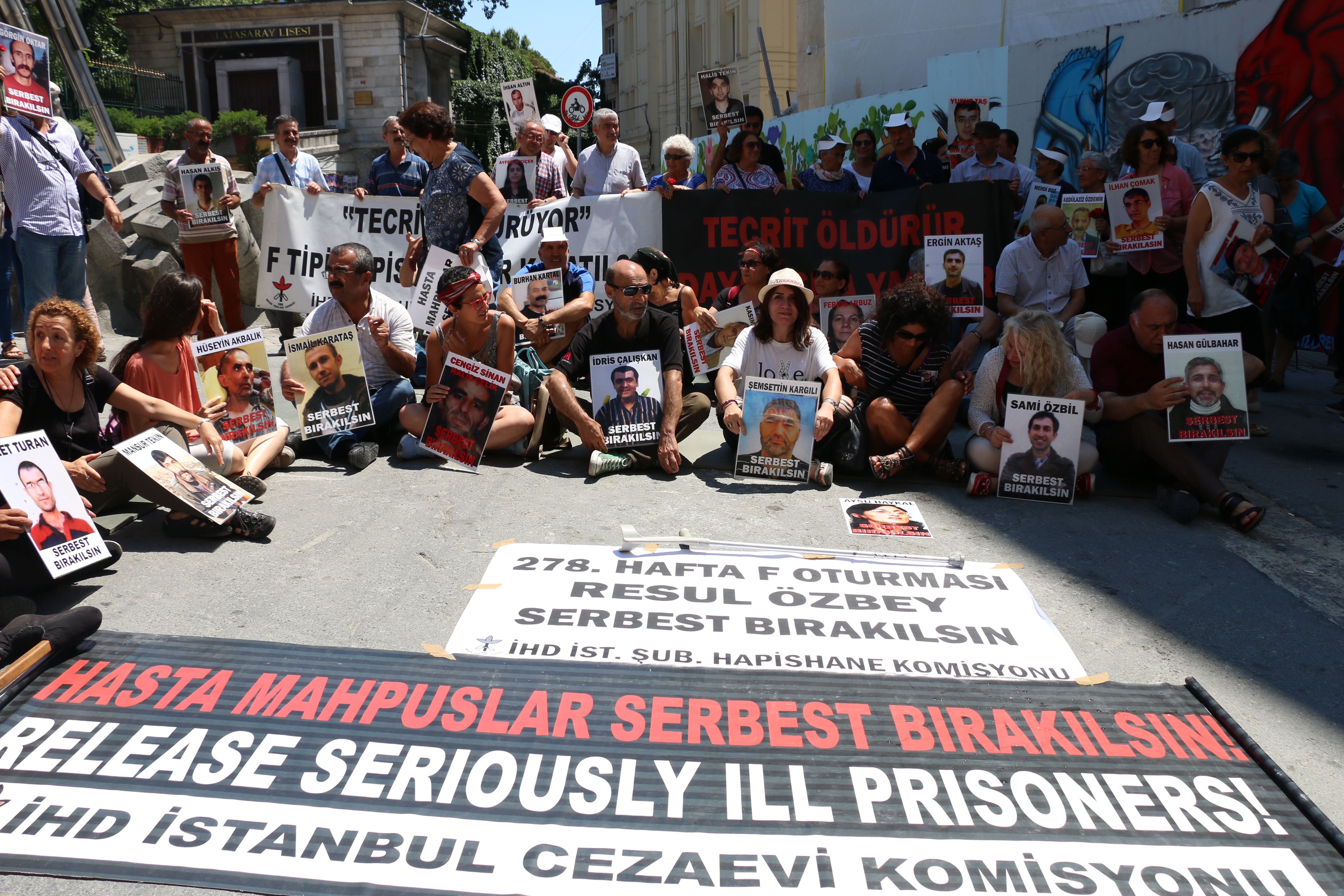 İnsan Hakları Derneği (İHD) Hapishane Komisyonu, hasta tutukluların durumuna dikkat çekmek amacıyla her hafta Cumartesi günü Galatasaray Meydanı’nında yaptığı F oturumu’nun 278. Haftası. Bu hafta Van F Tipi Hapishanesi’nde bulunan verem hastası Resul Özbey’in serbest bırakılması istendi.