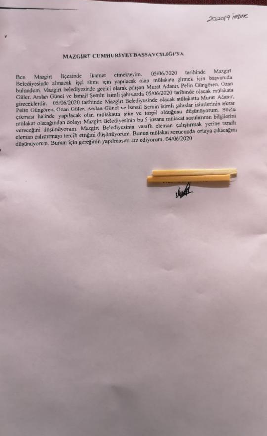 Dersim’in Mazgirt ilçesinde AKP’li belediyede işçi alımlarında yapılan mülakatlarda usulsüzlük yapıldığı öne sürüldü.
