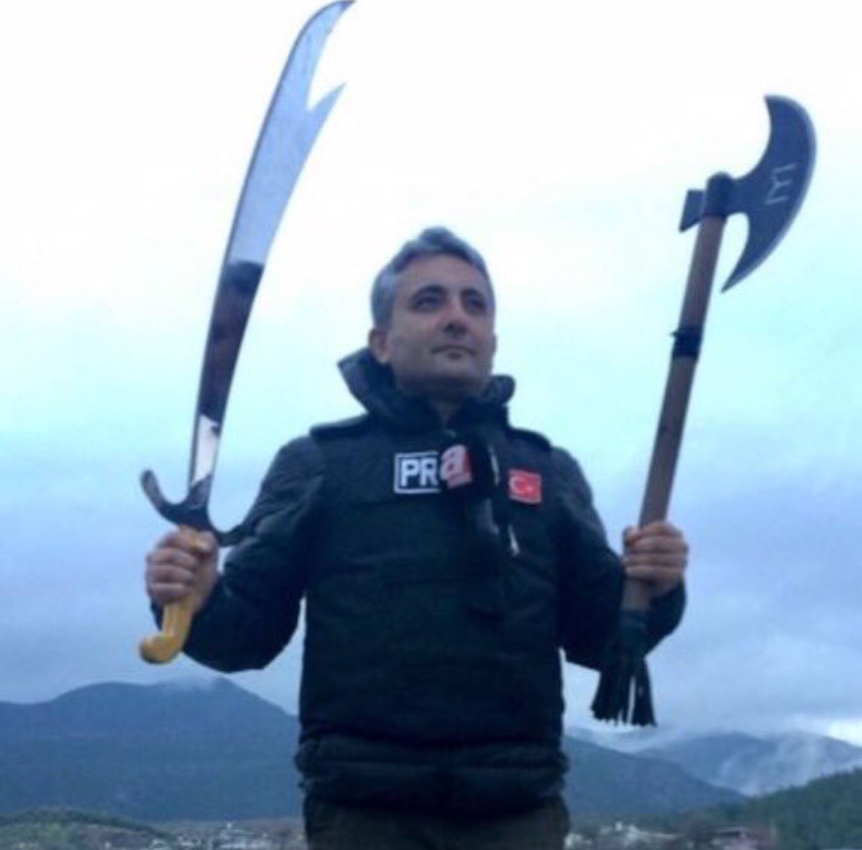 PİRHA- Yandaş A Haber Yurt Haberler Müdürü Kerim Ulak’ın, sosyal medyada dolaşan ve elinde zülfikar ve balta bulunan fotoğrafı büyük tepki ile karşılandı.