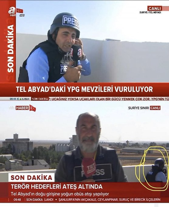 Görüntülerde, A Haber Müdür Ulak duvarın arkasına saklanarak yayın yaparken, TRT muhabiri ayakta ve kasksız bir şekilde canlı yayına devam etmiş, ancak A Haber’in, Suriye’deki çatışma alanında olmadığı halde oradaymış gibi yayın yaptığı ortaya çıkmıştı.