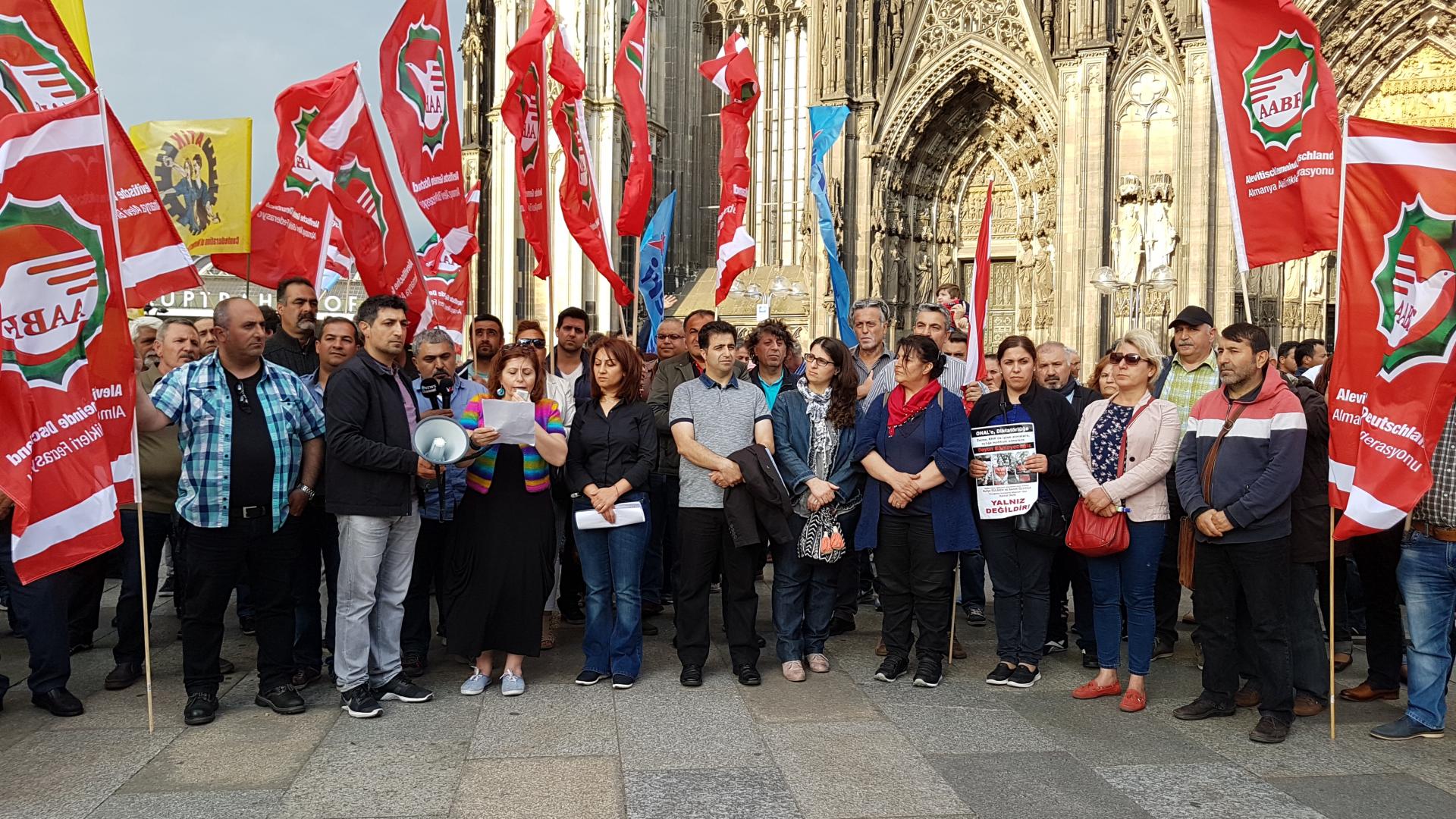 Dom Kilisesi önünde gerçekleştirilen açıklamaya bir çok kurum da destek verdi. Açıklama ilk olarak AABF NRW Eyalet Başkanı Funda Öztürk tarafından Almanca okundu. Ardından Almanya Alevi Kadınlar Birliği Başkanı Özlem Akgül ise açıklamayı Türkçe okudu.