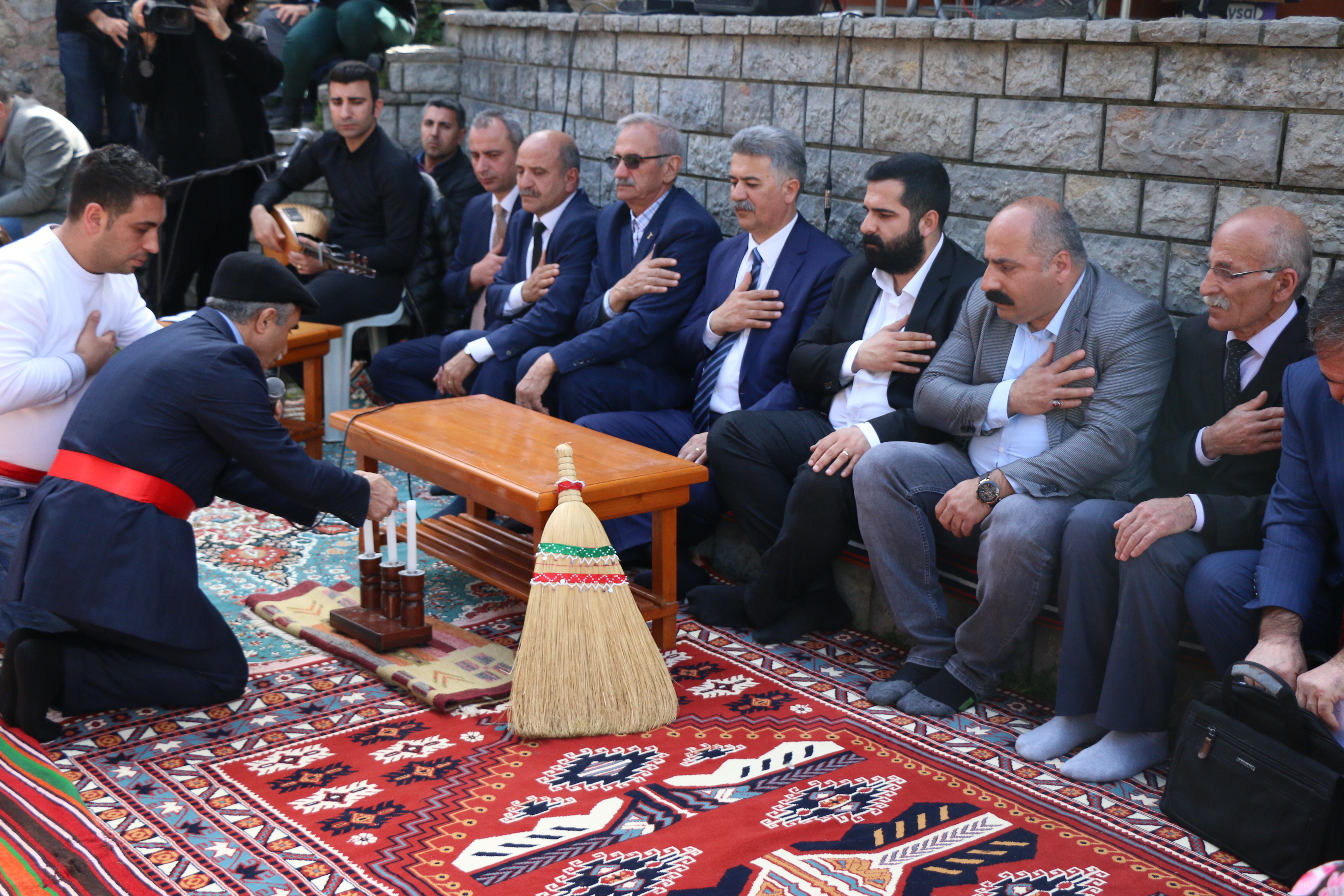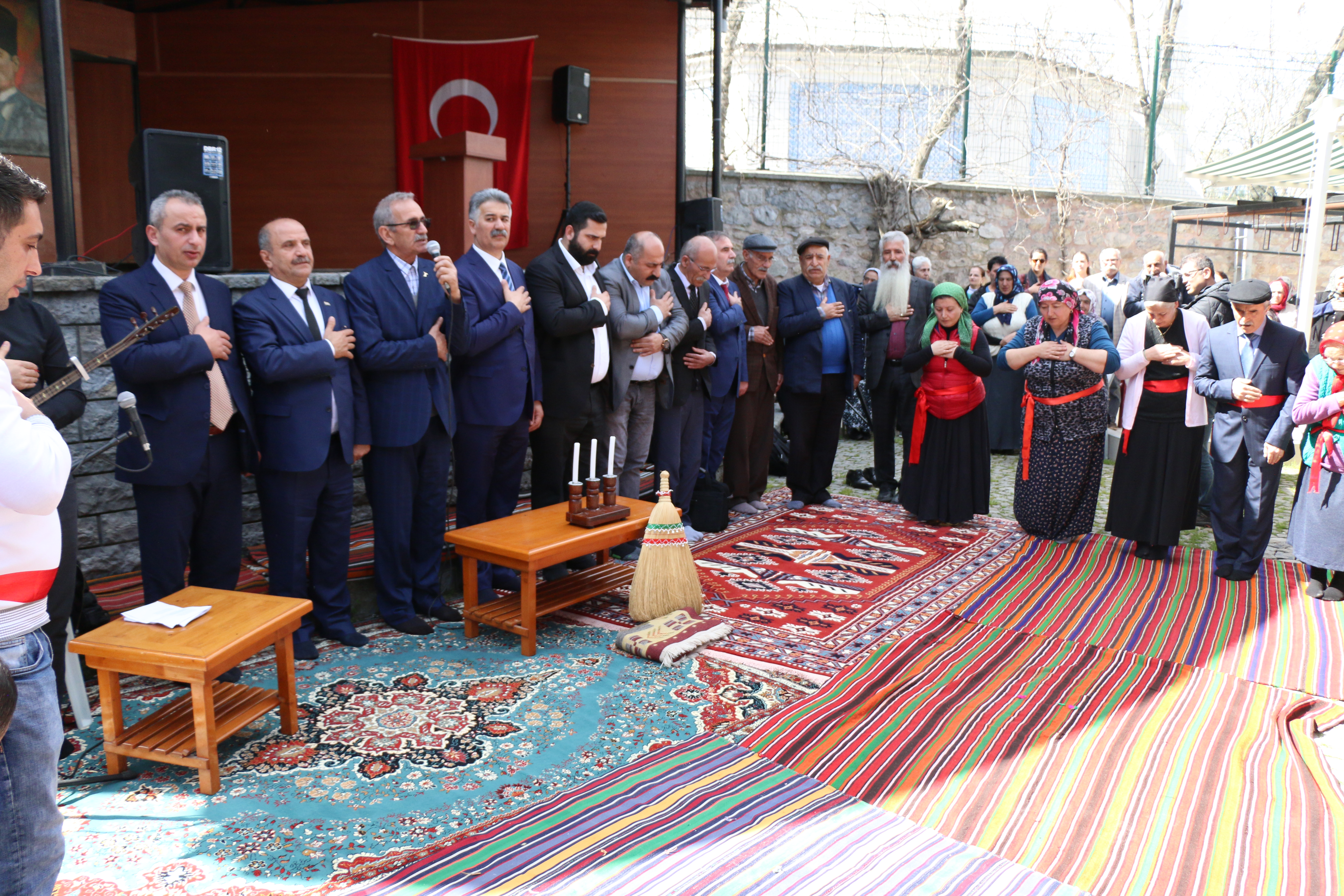 Dergah dedelerinden Musa Güzel’in verdiği duanın ardından aklın, temizlik, paklığın simgesi olduğuna inanılan süt dağıtıldı. Sütün dağıtılmasının ardından Newroz etkinliği başladı. Saygı duruşu ile başlayan etkinliğin açılış gülbengini Eren Yıldırım dede okudu.