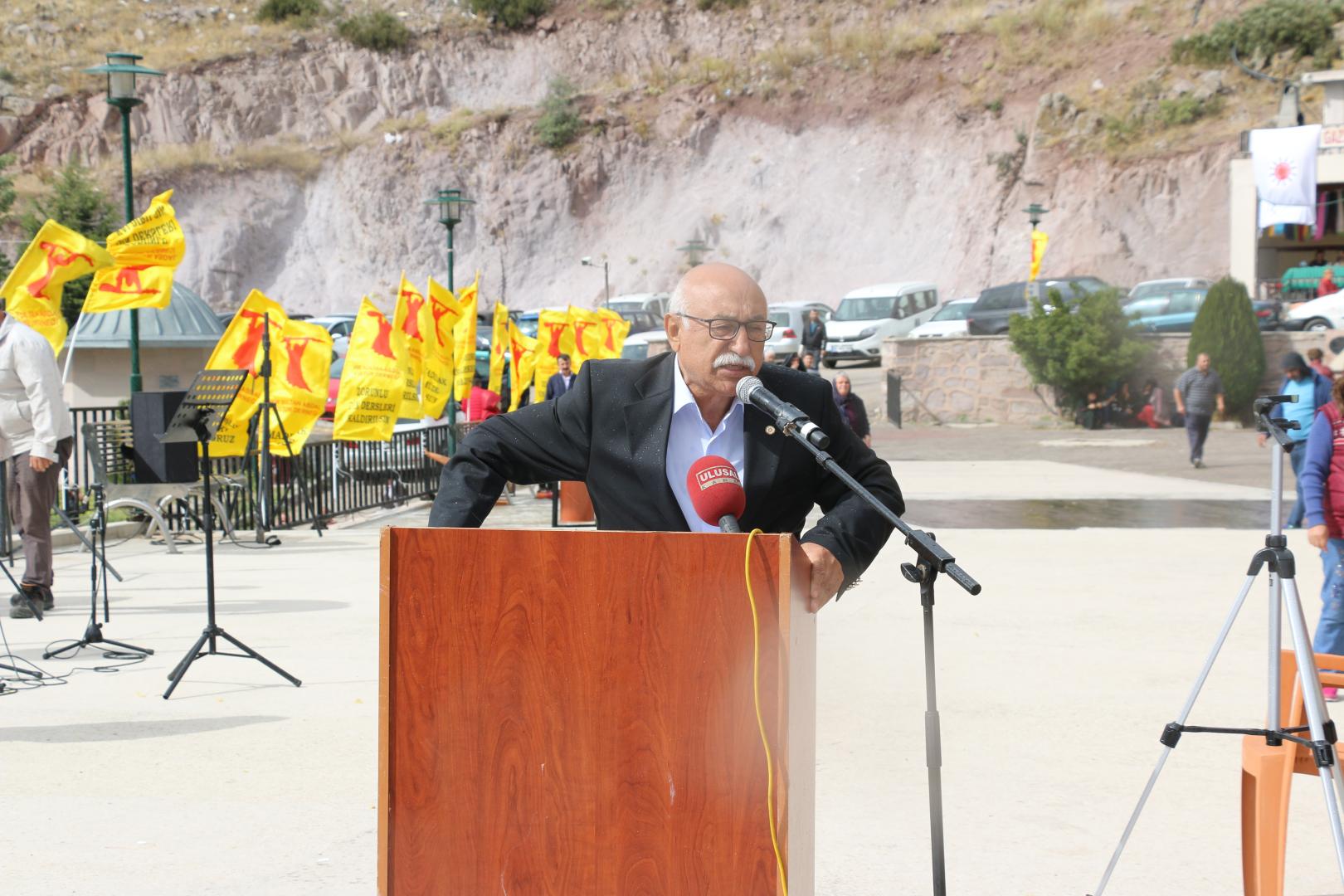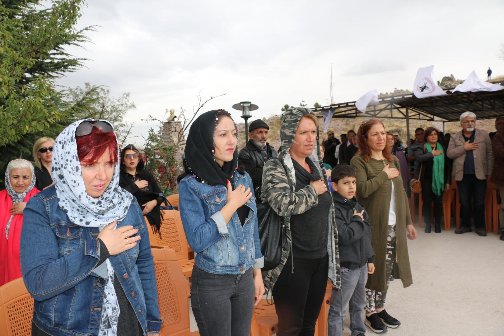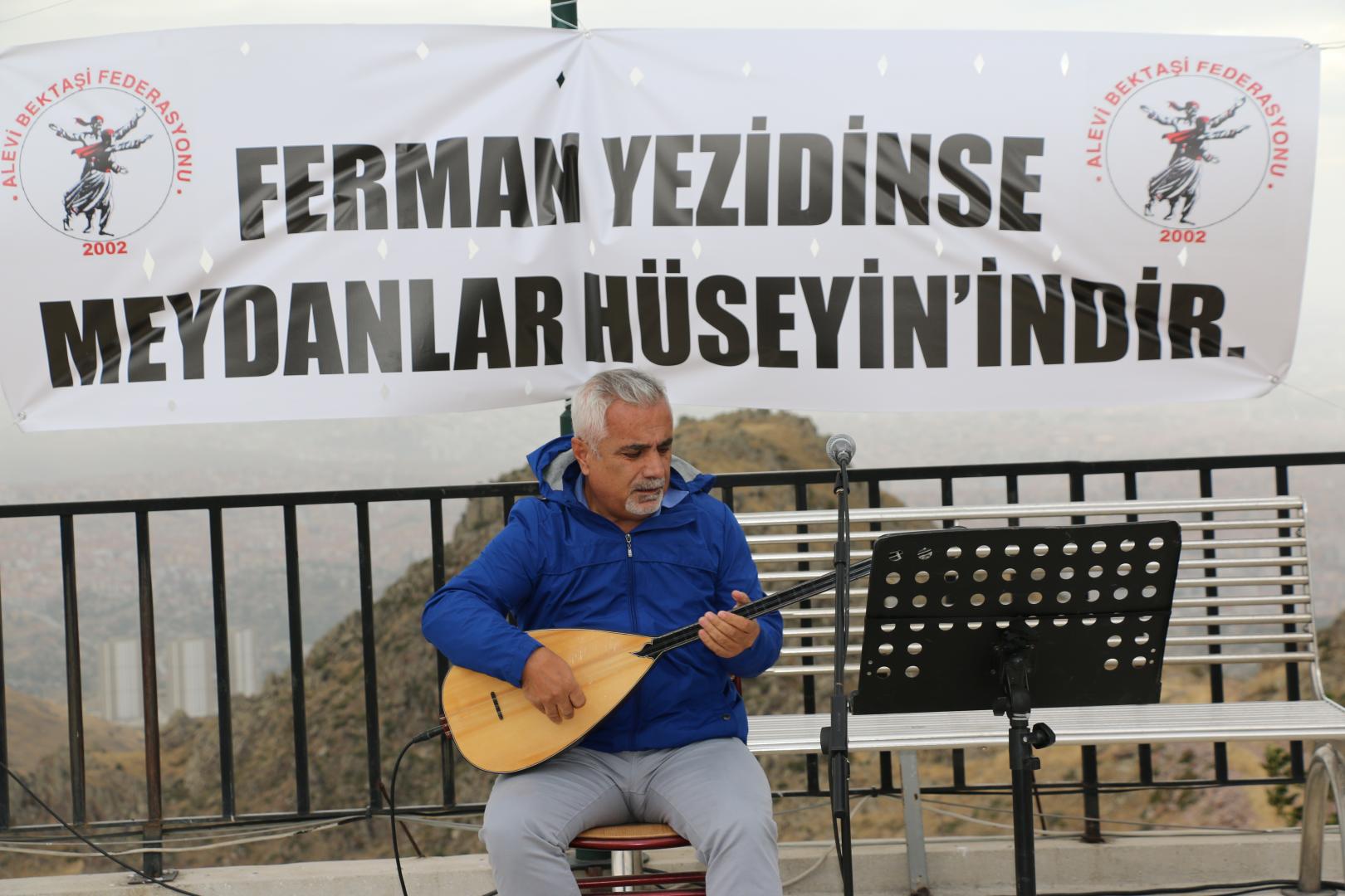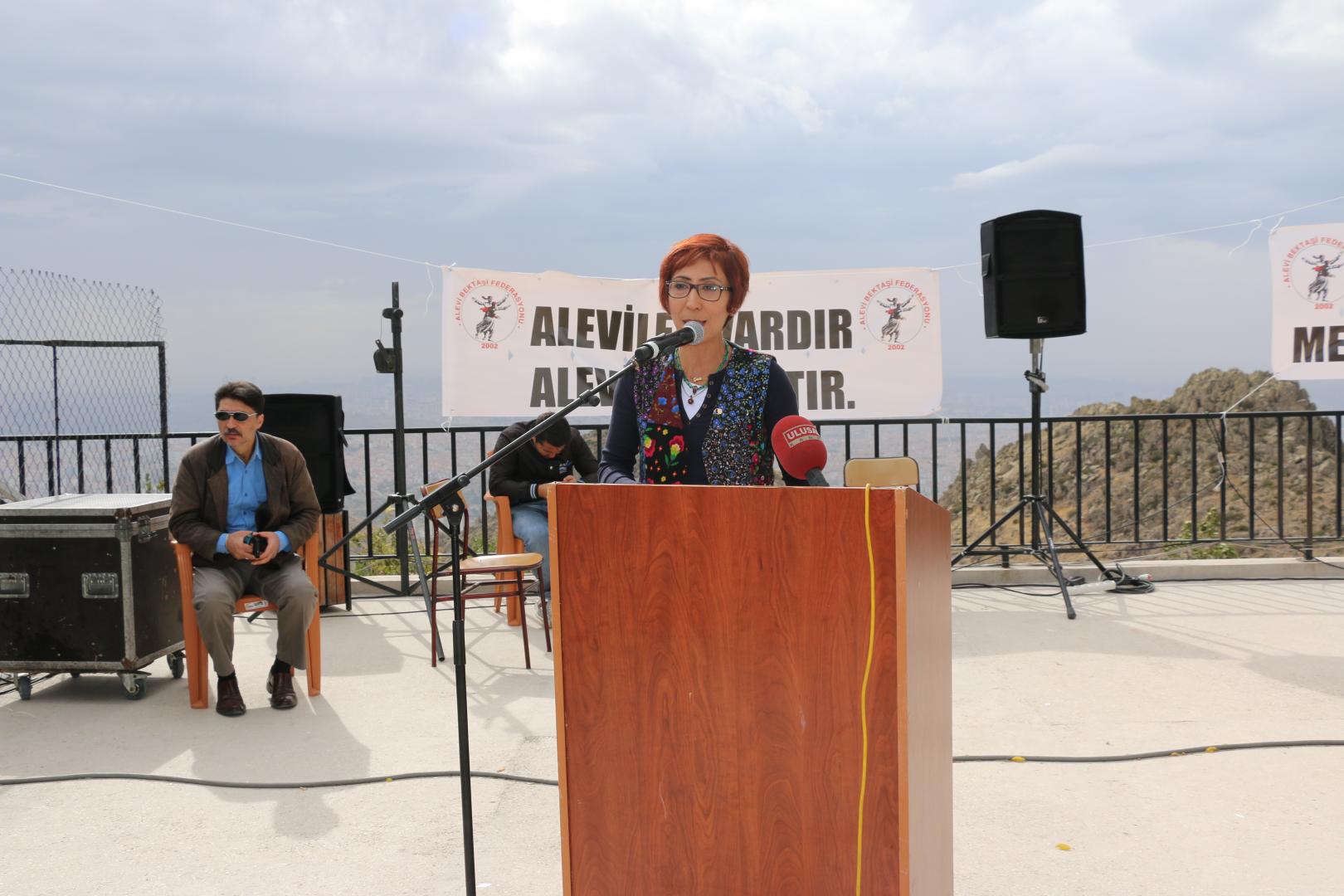 “Önemli bir mekândayız biz Alevilere her zaman şu soruyu sordular. Nereden geldiniz, kimsiniz? diye bizde sürekli anlatmaya çalıştık. Nereden mi geldiğimizi bu mekân bize gösteriyor ki biz buranın en sahip olanlarıyız. Ankara’da bir tepeden bütün Ankara’nın gözetleyeni, koruyucusuyuz aynı zamanda, buradan oraya söz söyleyeniz. Bütün mekânlarımızdan biz razıyız ama biz biliyoruz ki öyle dik duralım ki bütün ziyaretlerimizde bizden razı olsunlar. Alevilik doğum kapısıdır hal kapsıdır. İlk doğarken başlar her şey devri devran olsun deriz bu devri çeviren bir şekliyle bütün kaybettiklerimizi toprak anaya yeniden doğumu anaya borçluyuz. Ana bizler için çok değerlidir. Biz hepimiz canız diyoruz ama öyle bir aşamaya geldik ki bu kapitalizm, bu faşizm bu coğrafya kadınlarımıza bakışımızı da öyle değiştirdi ki hakikaten çok az sayıda mikrofondan çok az kurumda sözlerimiz söyler hale geldik. Bizim ecdadımızdan öğrendiğimiz bir şey vardır. Kadın erkek birlikte yürür. Birlikte mücadele eder deride kalanlarda güçlü bir şekilde yoluna devam eder. Tam da İmam Hüseyin, Zeynep anayla hareket ettiği içindir ki Zeynep ana o katliamdan o vahşetten çıktıktan bile dik durabildi ve sözünü yezidin mahkemelerinde söyleyebildi. Eğer Zeynep ana olmasaydı bugün biz hakikaten geçmiş hakkında Kerbela hakkında ne biliyorduk, bilmiyorum? Çünkü biz biliyoruz ki tarihi yazanlar kazananlardır. Kazananların tarihi de hep yalan tarihtir. Gerçekten biz gerçeği Kerbela gününü Zeynep anadan öğrendik dedi.”