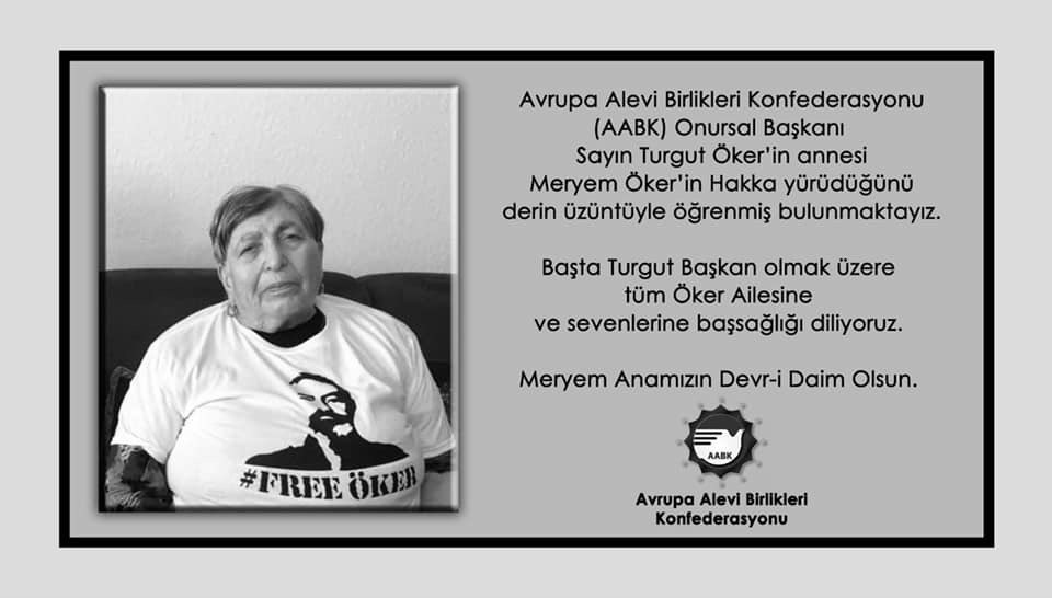 Avrupa Alevi Birlikleri Konfederasyonu (AABK) Onursal Başkanı Turgut Öker’in annesi Meryem Öker Hakk’a yürüdü.