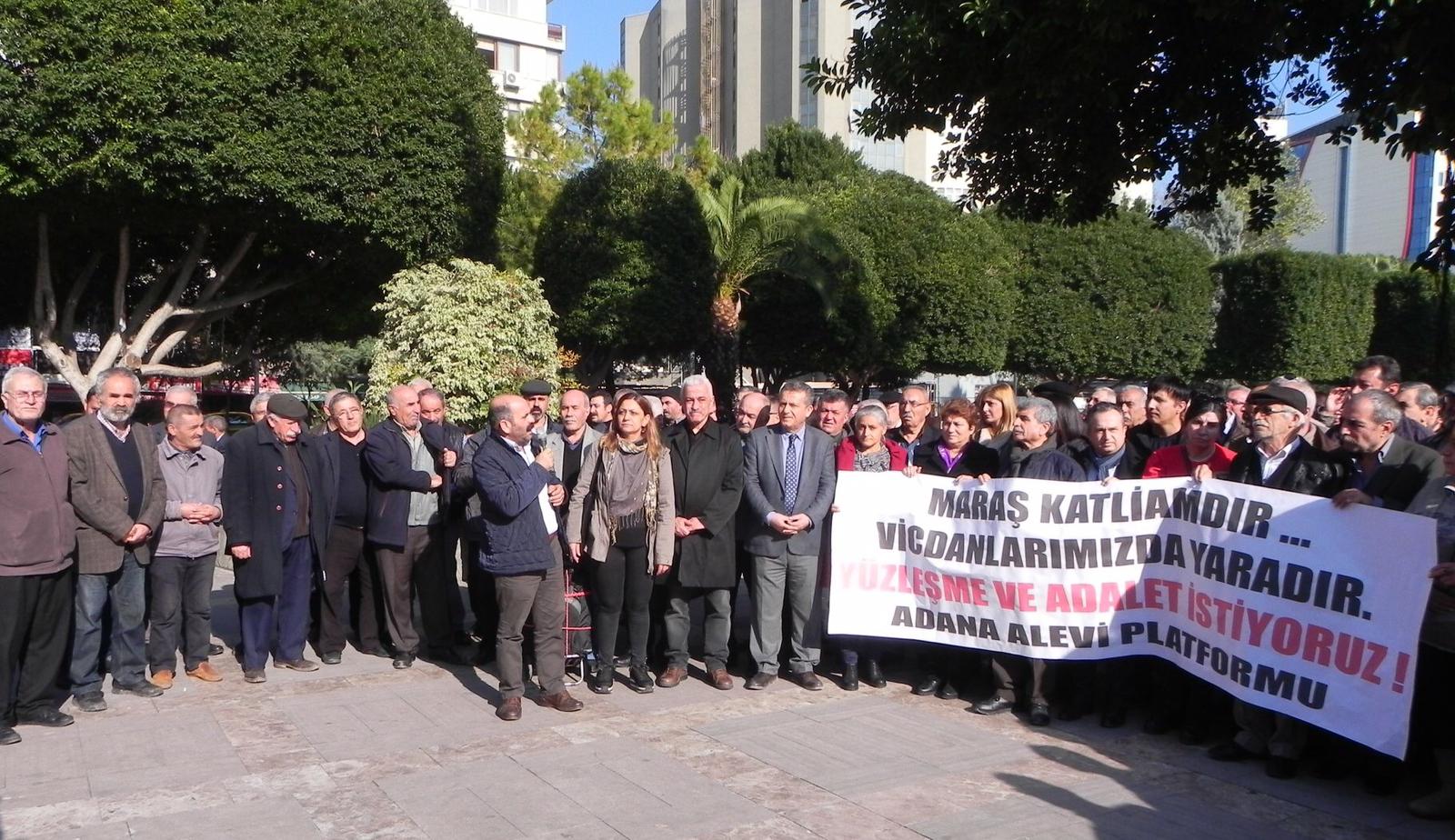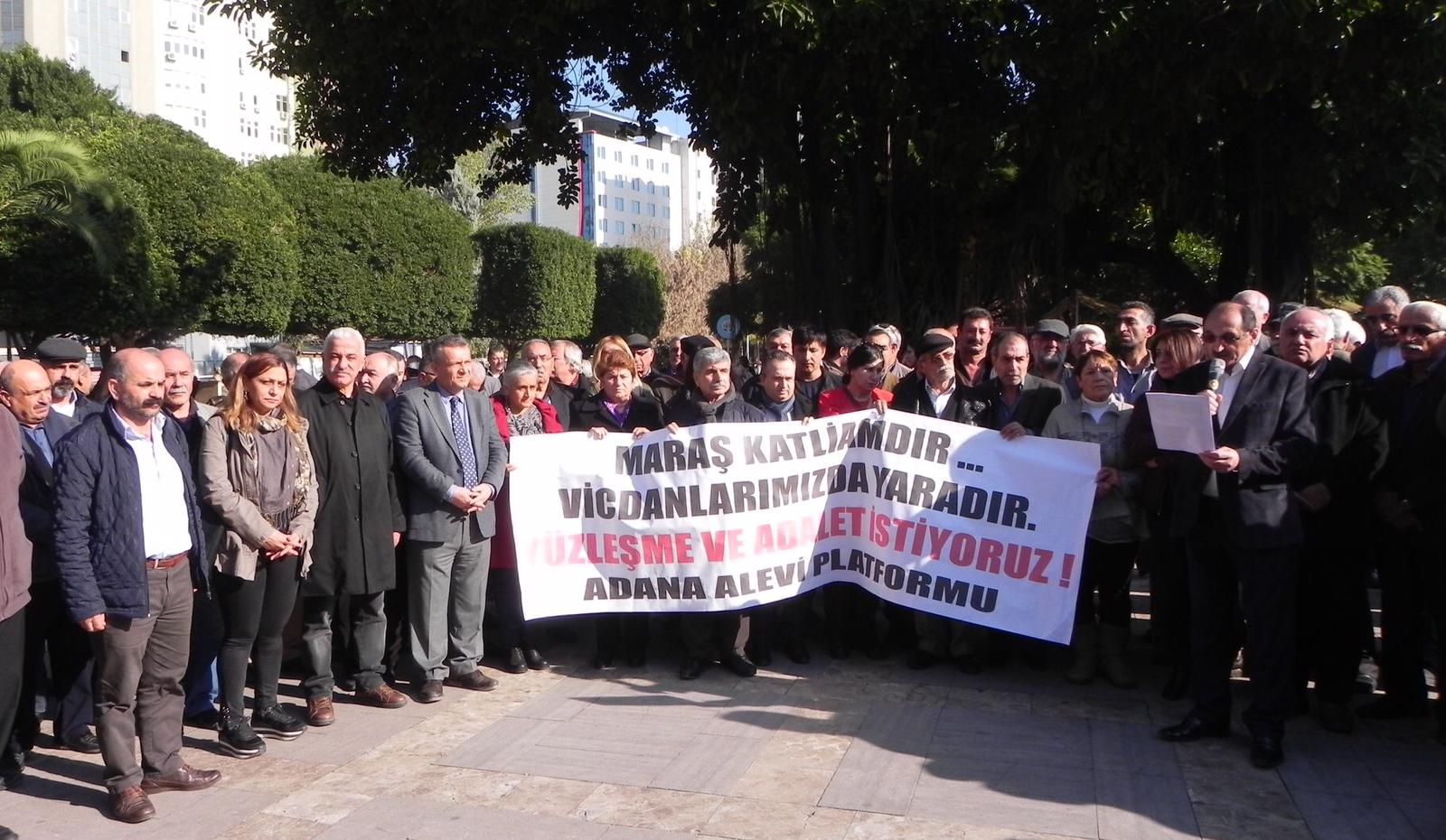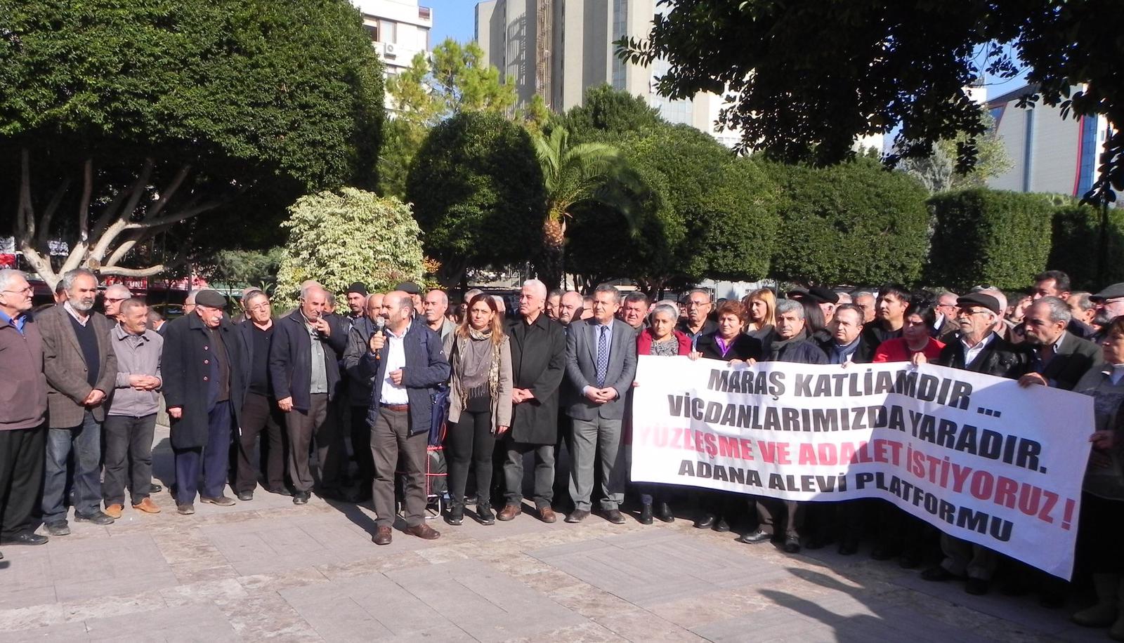 Adana Alevi Platformu, Maraş Katliamı’nın yıldönümü nedeniyle İsmet İnönü Parkı’nda basın açıklaması gerçekleştirdi. ‘Maraş katliamdır, Vicdanlarımızda yaradır, Yüzleşme ve adalet istiyoruz’ pankartının açıldığı açıklamaya, Halkların Demokratik Partisi (HDP), İnsan Hakları Derneği (İHD), Cumhuriyet Halk Partisi (CHP), KESK, DİSK, TMMOB, Emek Partisi (EMEP), Devrimci Gençlik Dernekleri üyelerinin yanı sıra çok sayıda yurttaş katıldı.