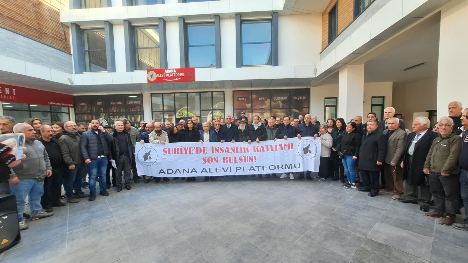 Adana’da Alevi kurumlarının çağrısıyla bir araya gelen yurttaşlar, AKP Grup Başkan Vekili Leyla Şahin Usta’nın Alevilere dönük söylemi ve Suriye’de Alevilere, Kürtlere, Dürzilere ve Süryanilere dönük saldırılar protesto edildi.