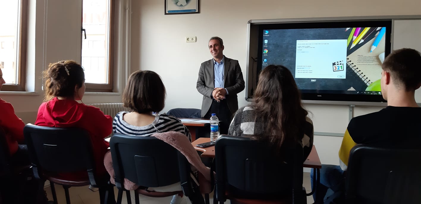 Misafir hoca olarak derse katılan Celal Fırat, burada öğrencilere Aleviliği anlattı.