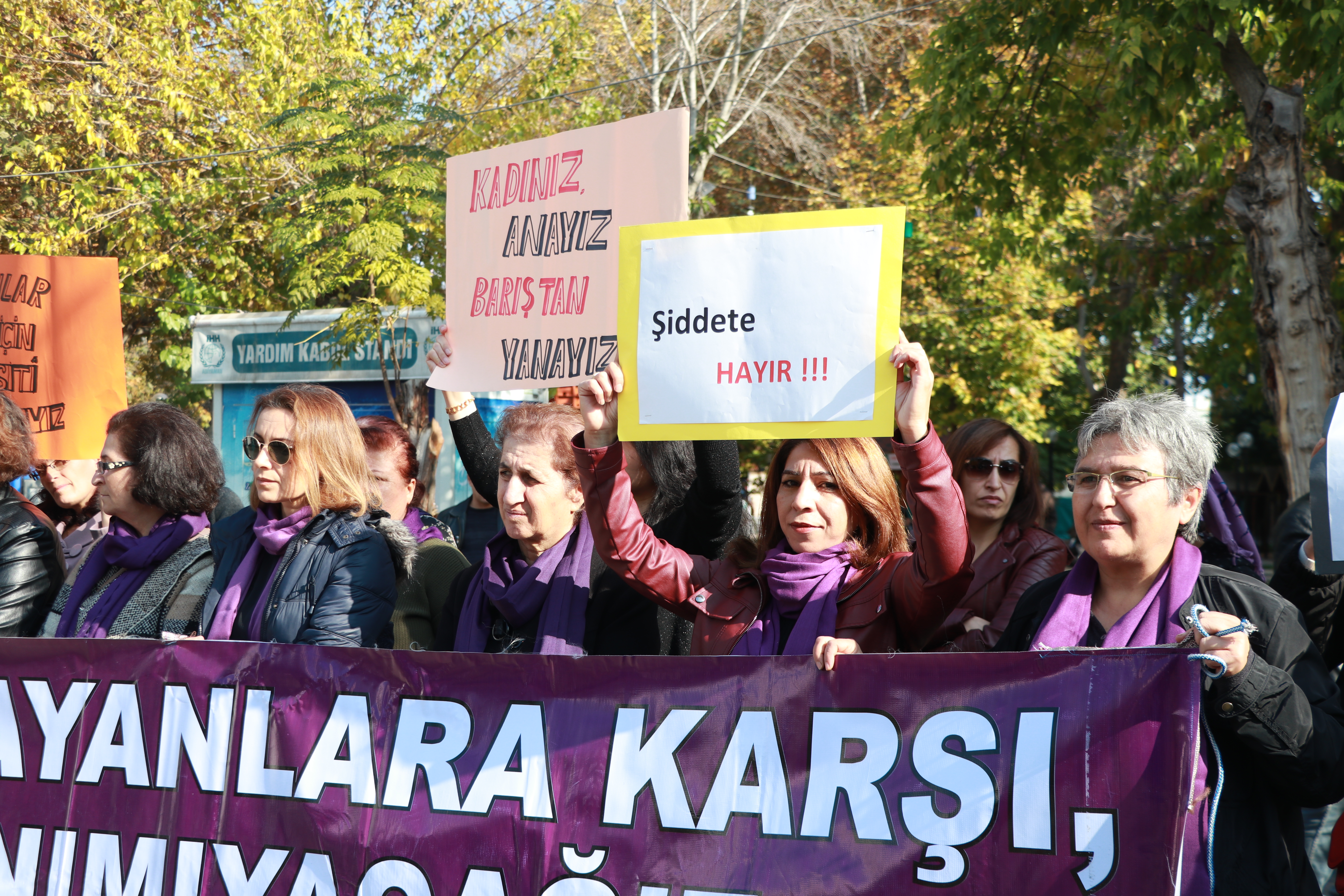 “Özgürlüğümüze, bedenimize, hayatımıza, kadın mücadelesine yönelik saldırıları; bizlere reva görülen bu düzeni kabul etmiyoruz! Sözümüzü örgütleyebilme, yan yana gelme ve hayatı değiştirme iradesinde ve iddiasındayız. Biliyoruz ki, bizi kenara iten, yok sayan, emeğimizi görünmez kılan, bedenlerimizi metalaştıran bu sömürü çarkın dişlilerine bir çakıl taşı olup takıldığımızda, bu çark dönemeyecek. Her türlü şiddetin son bulduğu, tacizin tecavüzün, istismarın, kadın cinayetlerinin, savaşın olmadığı; eşit, özgür, laik ve demokratik bir ülkede barış ve huzur içinde yaşamak hakkımız. Sen de gel, güç kat “Elele kadın dayanışmasıyla şiddetsiz bir Dünya’ya” birlikte yürüyelim.”
