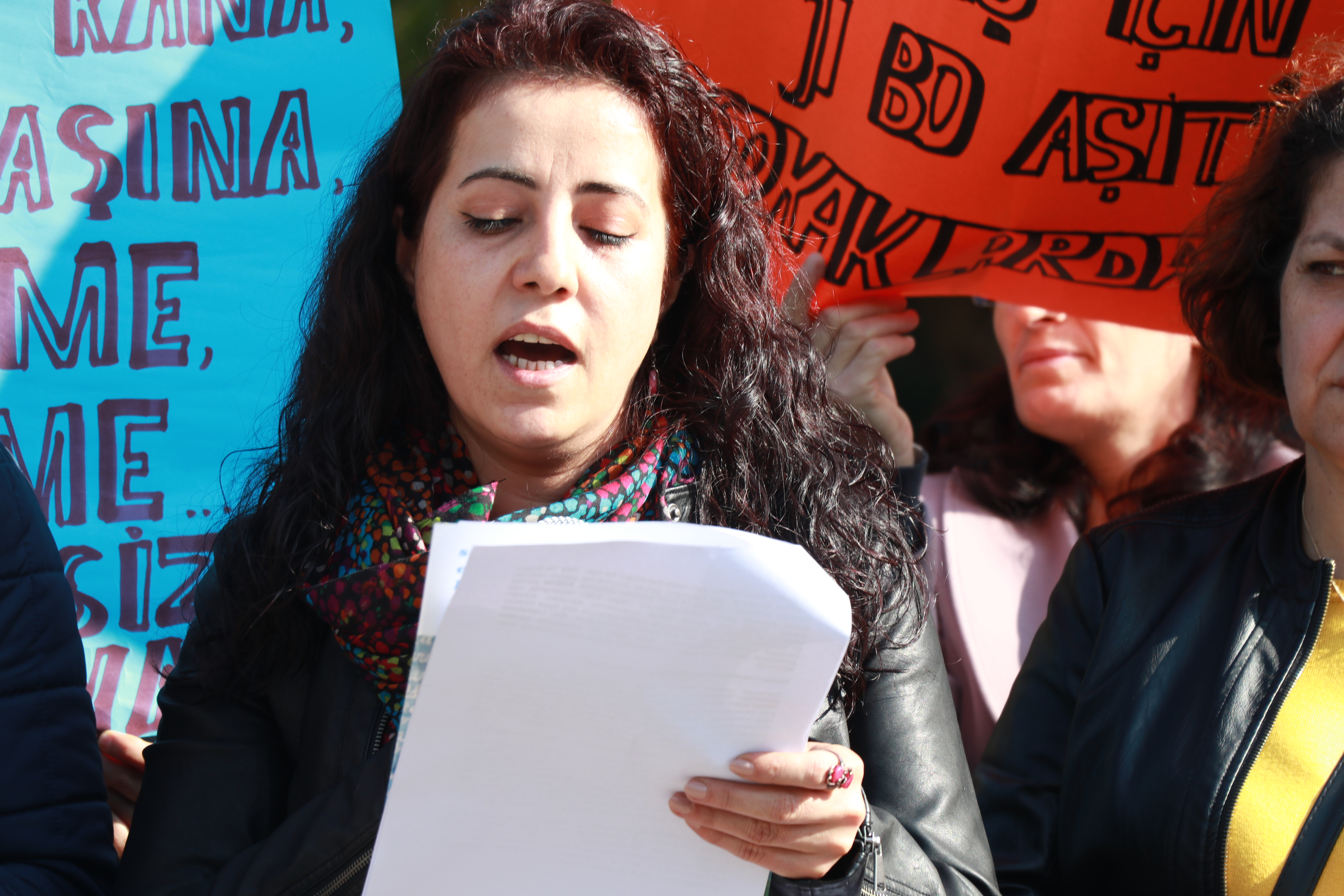 Yapılan basın açıklamasında İl Kadın Platformu adına basın metnini SES Adıyaman Şube Eş Başkanı Fatma Unutmaz okudu.